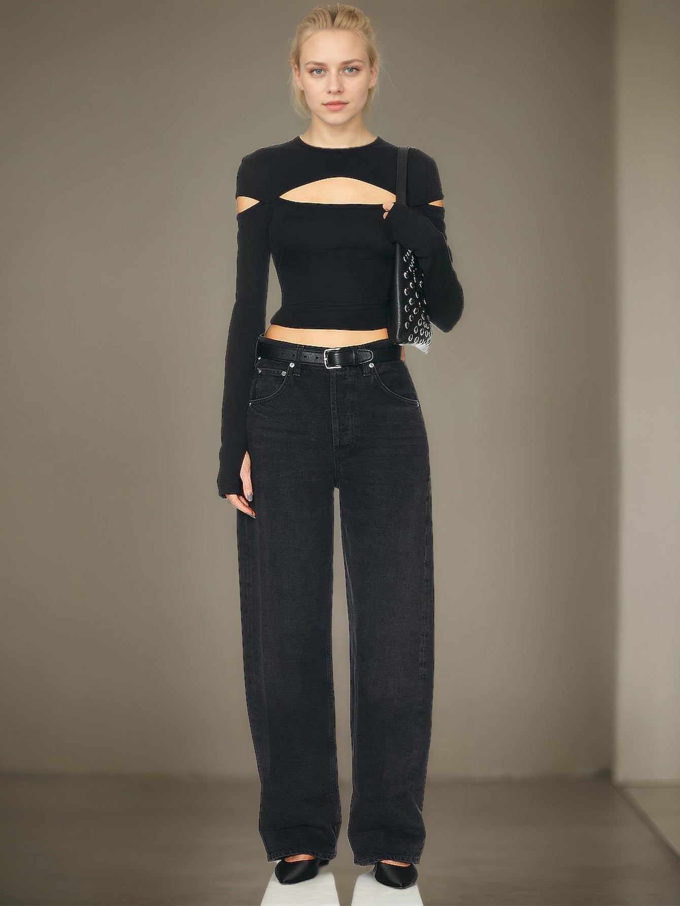 Black Full Sleeve Front Detail Top