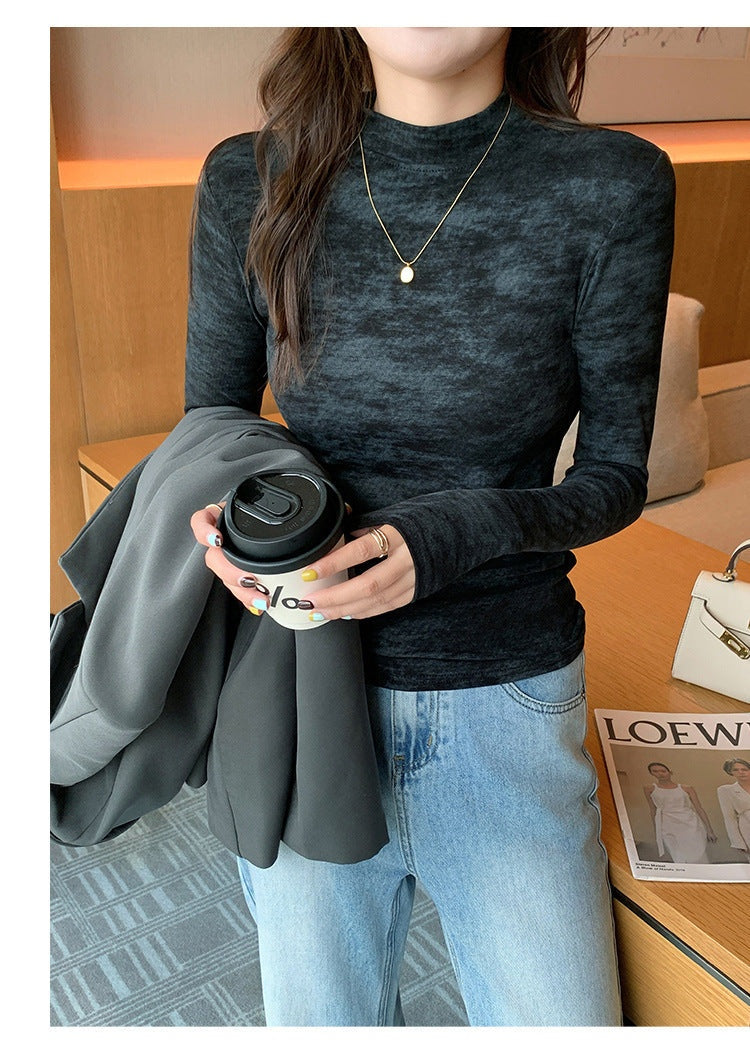 Blue Full Sleeve Scallop Hem Mock Neck Fitted Top
