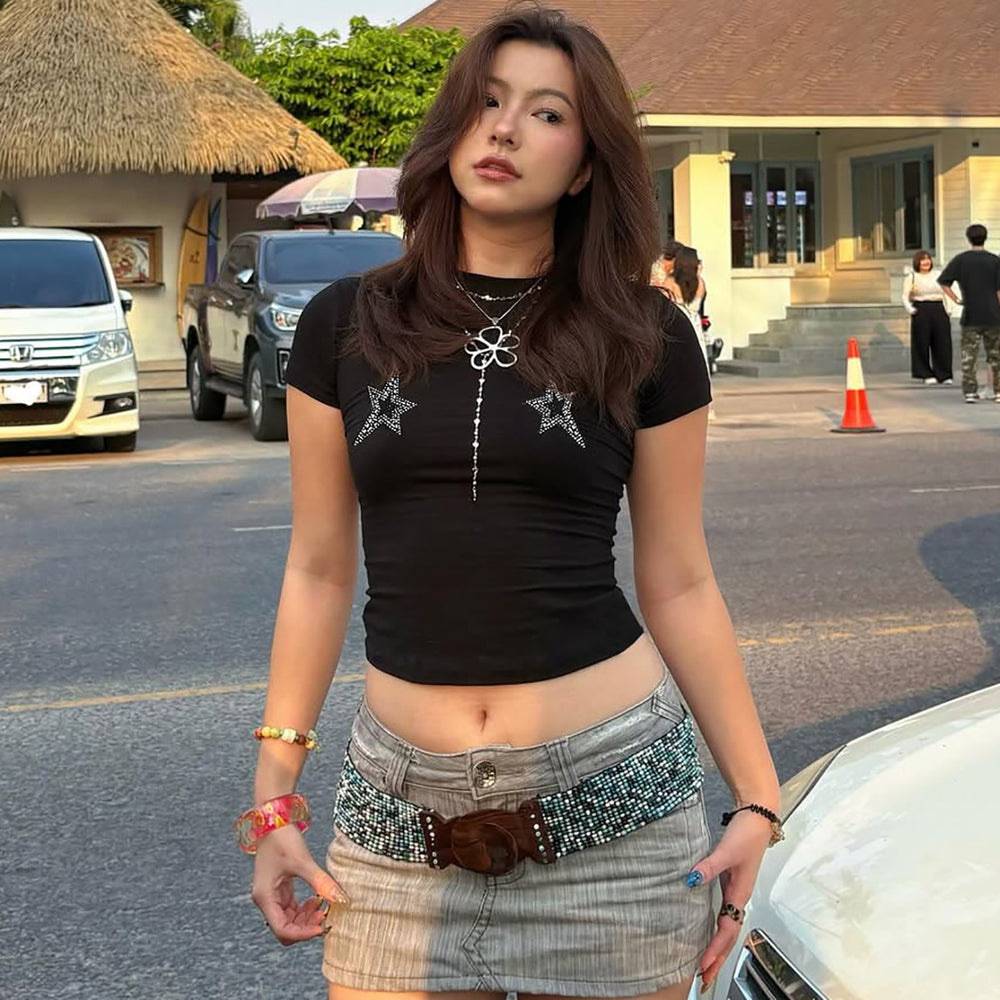 Make getting ready feel like a breeze with the Black Rhinestone Short Sleeve Crop Top. Perfect for street wear scenes and low-effort styling, it’s the kind of top you’ll keep coming back to. The design blends ease with a hint of edge,made for the girl who's always out the door. Get dressed, get out.