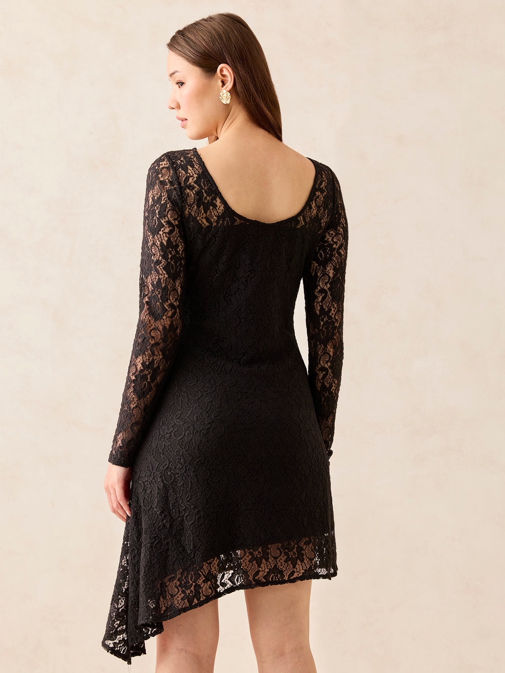 Heading out? Black Printed Mesh Full Sleeves Mini Dress is ready. With a slim shape and wearable black shade, this party mini dress makes styling easy. Designed for party plans, it’s your quick outfit fix that feels polished and pulled together without overthinking it.