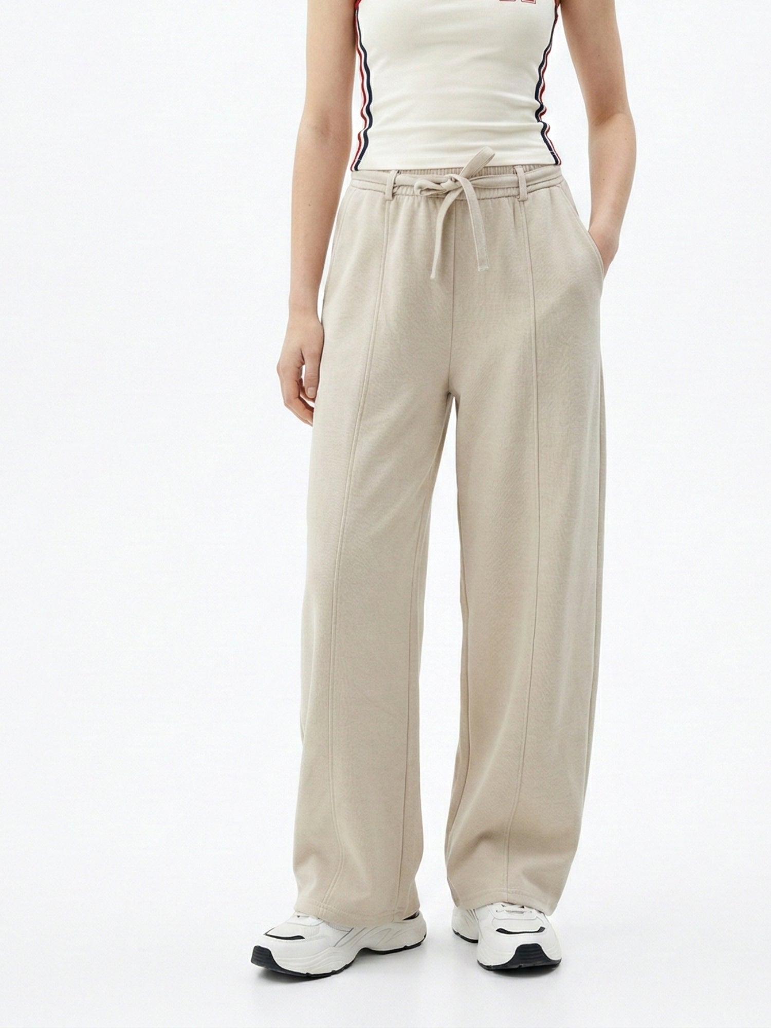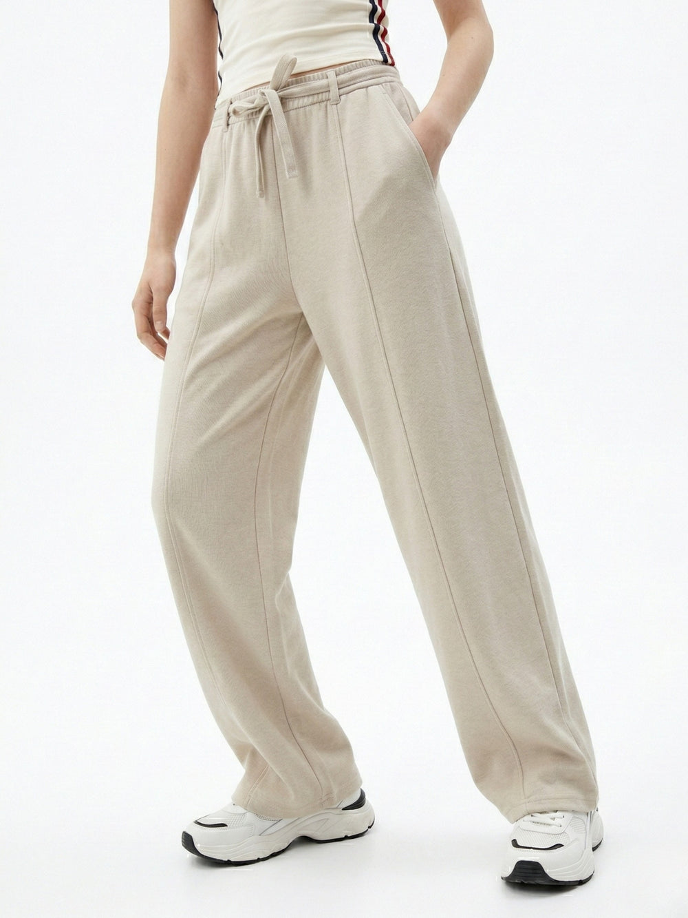 White High Waist Drawstring Pant