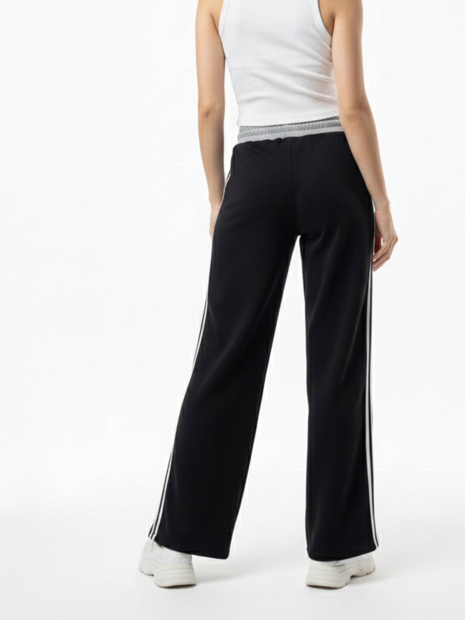 Elevate your daily rotation with these black side stripe pants featuring a sharp contrast waistband. The tailored fit transitions seamlessly from office wear to casual dinners. A modern street style essential, these pants are perfect for stylish commutes and evening social gatherings.