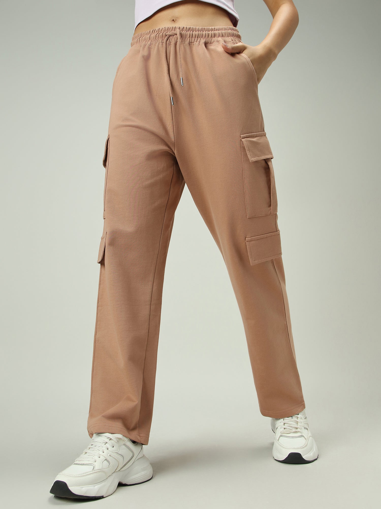 Combine utility and comfort with these brown cargo pocket sweatpants. The practical cargo pockets and earthy brown tone make them a go-to for light hiking or forest strolls. These joggers are also a practical and stylish solution for a casual lunch or busy travel days.