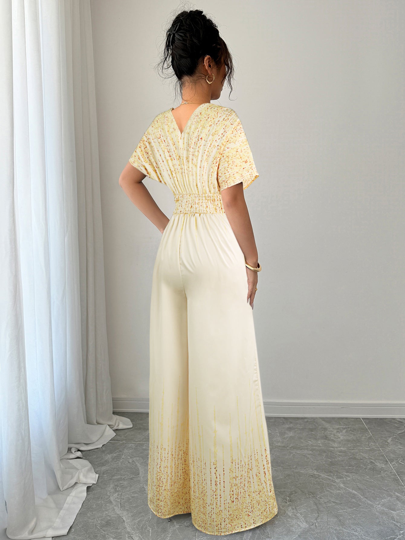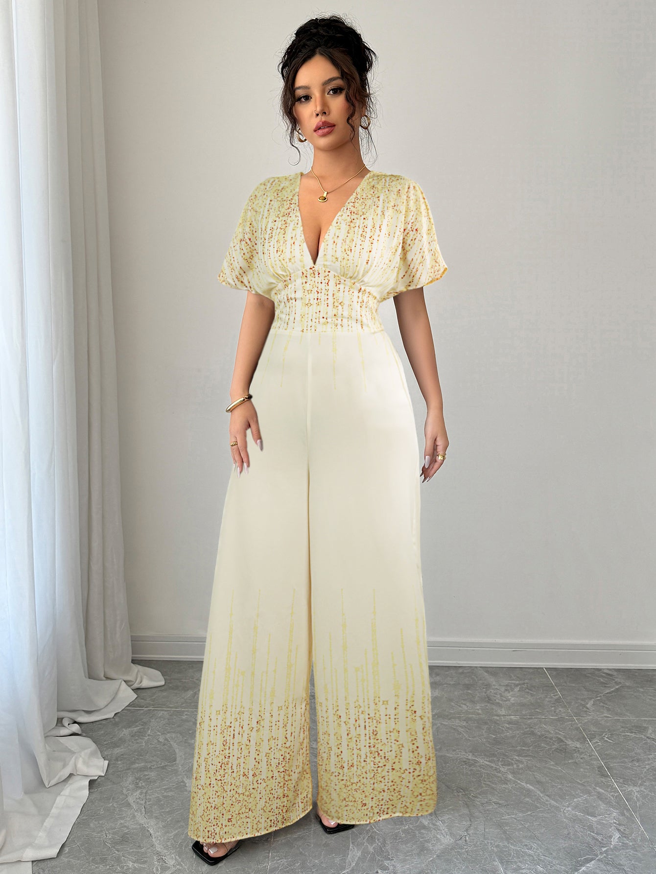 Cream V- Neck Cinched Waist Jumpsuit is made for nights that don't end at midnight. Fit and flare keeps it cute and confident of a certified serve. Get dressed. Get out.