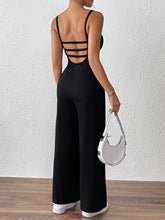 Navy Blue Plunge Neck Flowy Jumpsuit