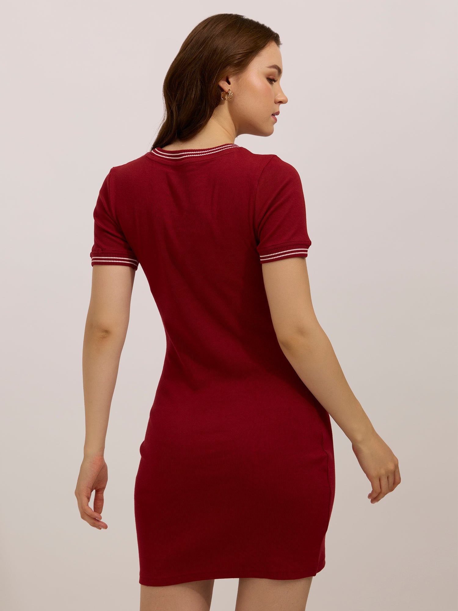 Slide into the day with Maroon Varsity Ribbed Bodycon Dress , a piece that understands your mood without needing tweaks. With a bodycon form, it plays well with sneakers, boots, or sandals. A true outfit repeater. Get dressed. Get out.