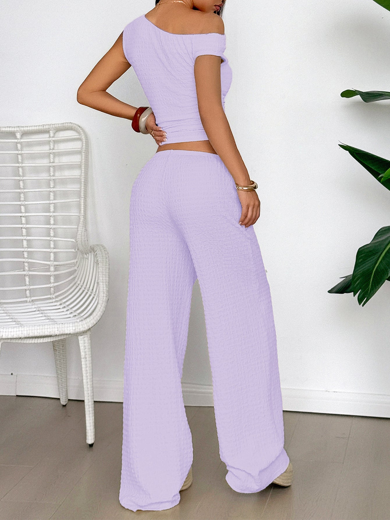 Purple Textured Top And Pants Co-Ord Set