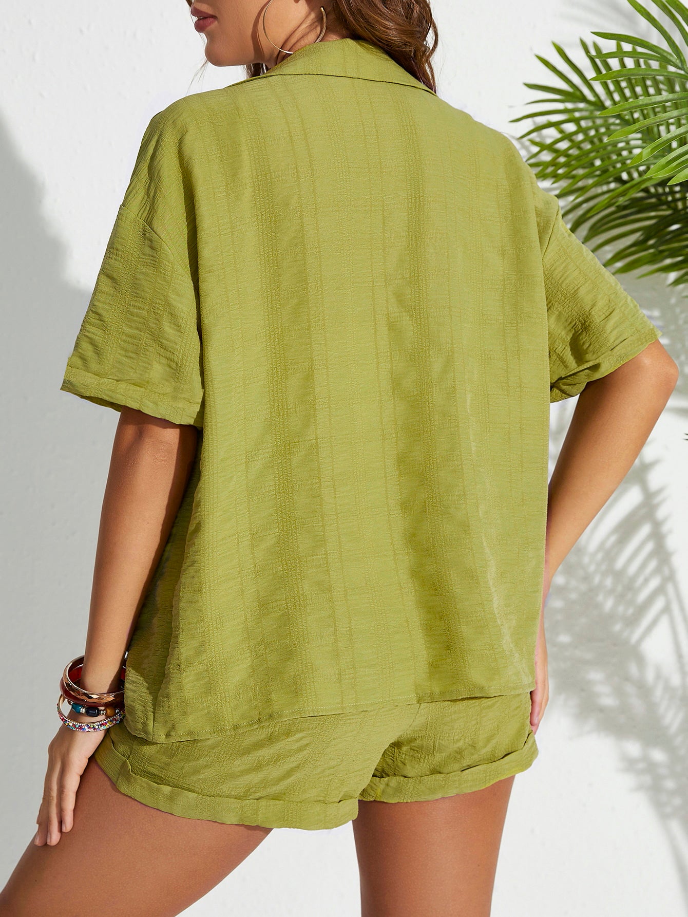 Green Shirt Style Folded Hem Co-Ord Set