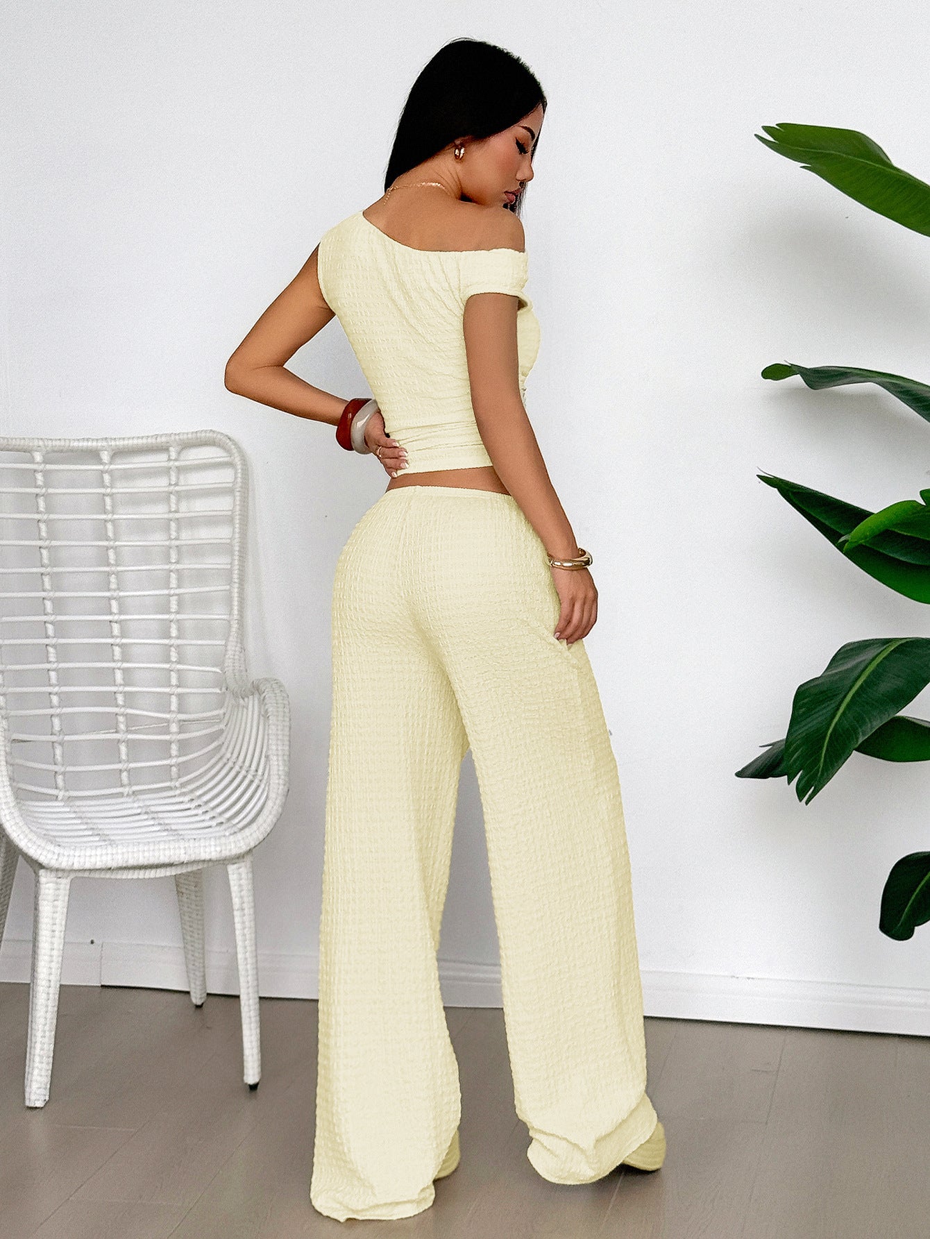 Yellow Textured Top And Pants Co-Ord Set