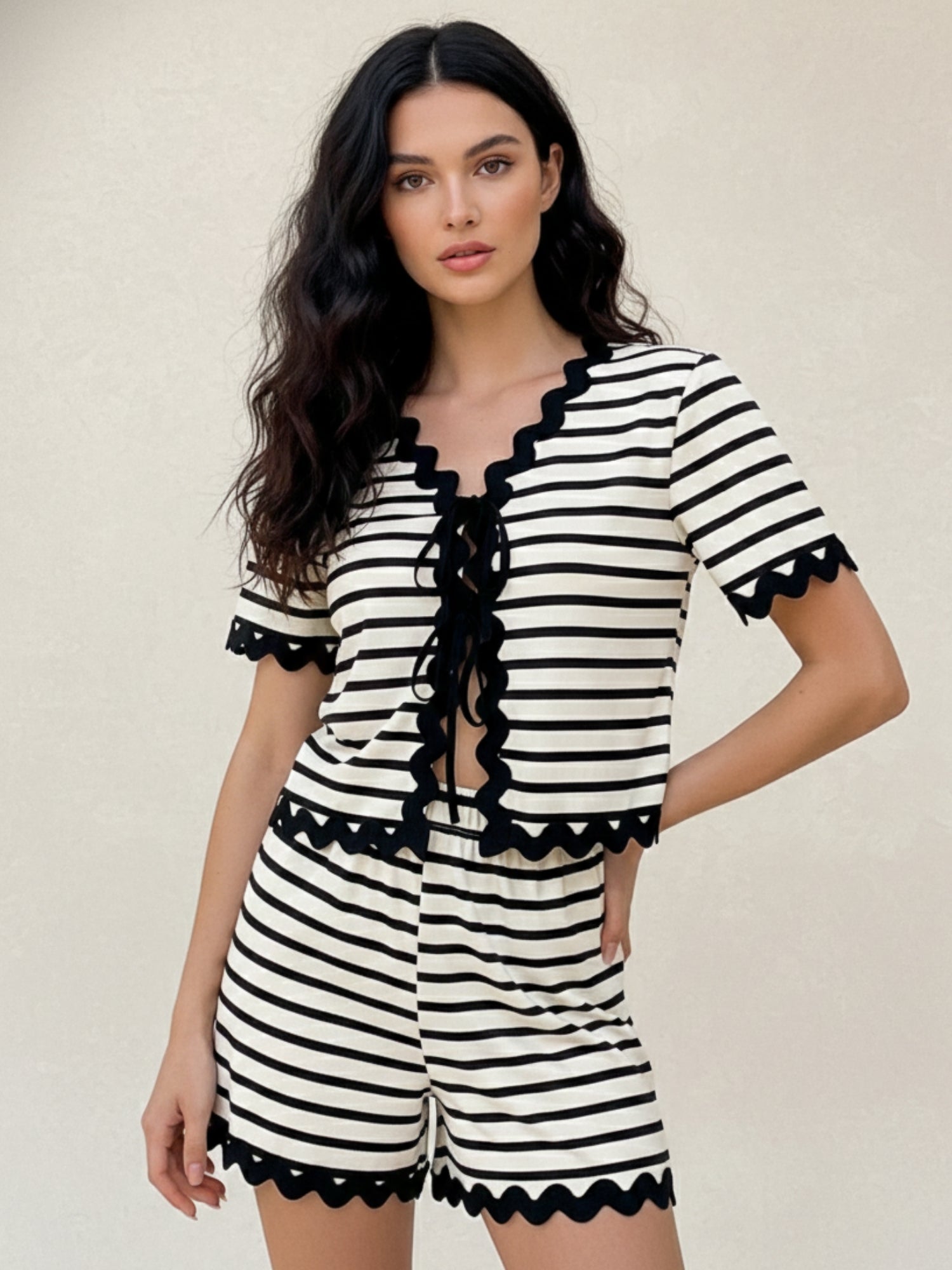 White Zig-Zag Hem Shirt And Shorts Set