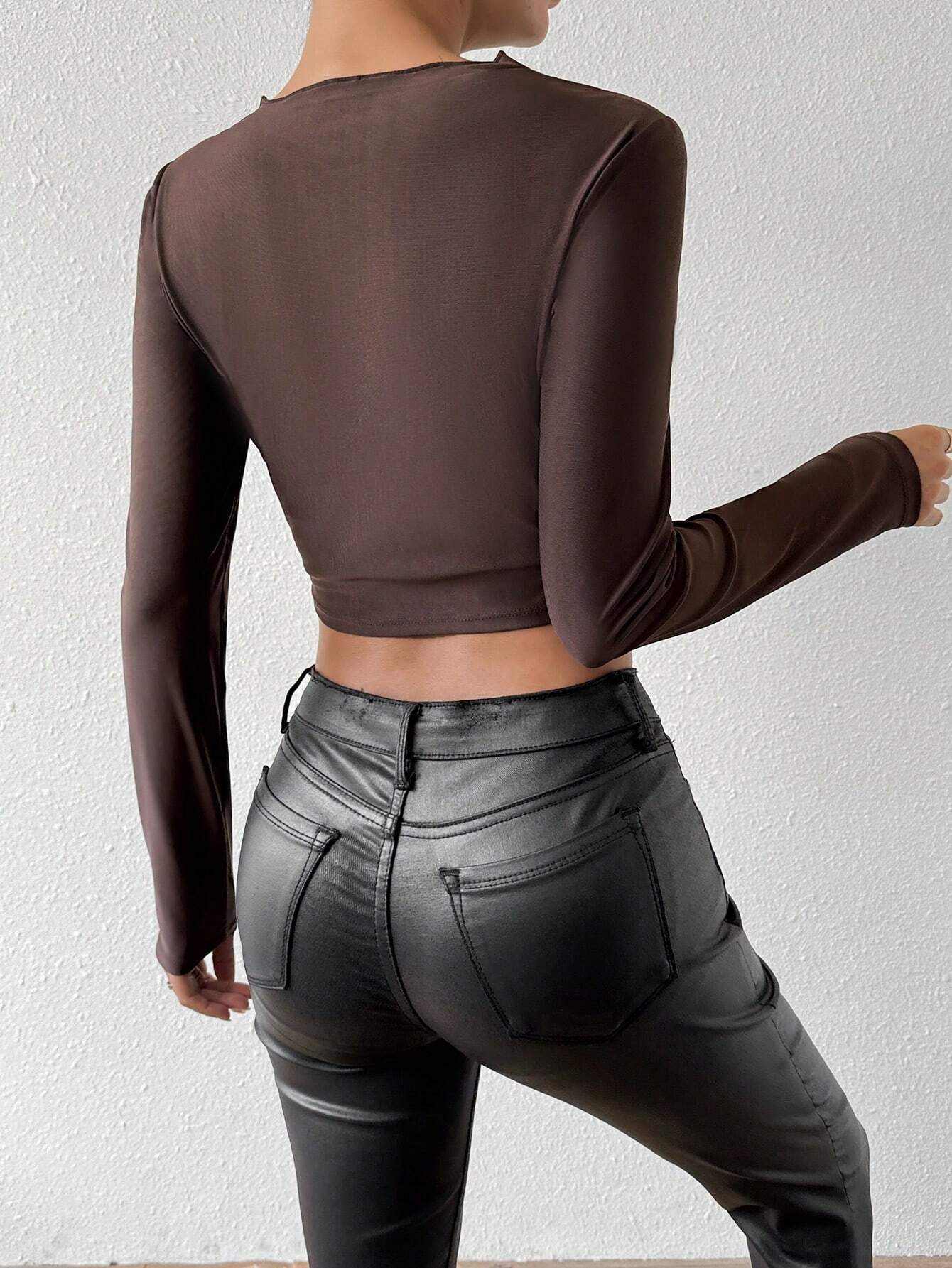 Brown Full Sleeve Neck Cut-Out Detail Top