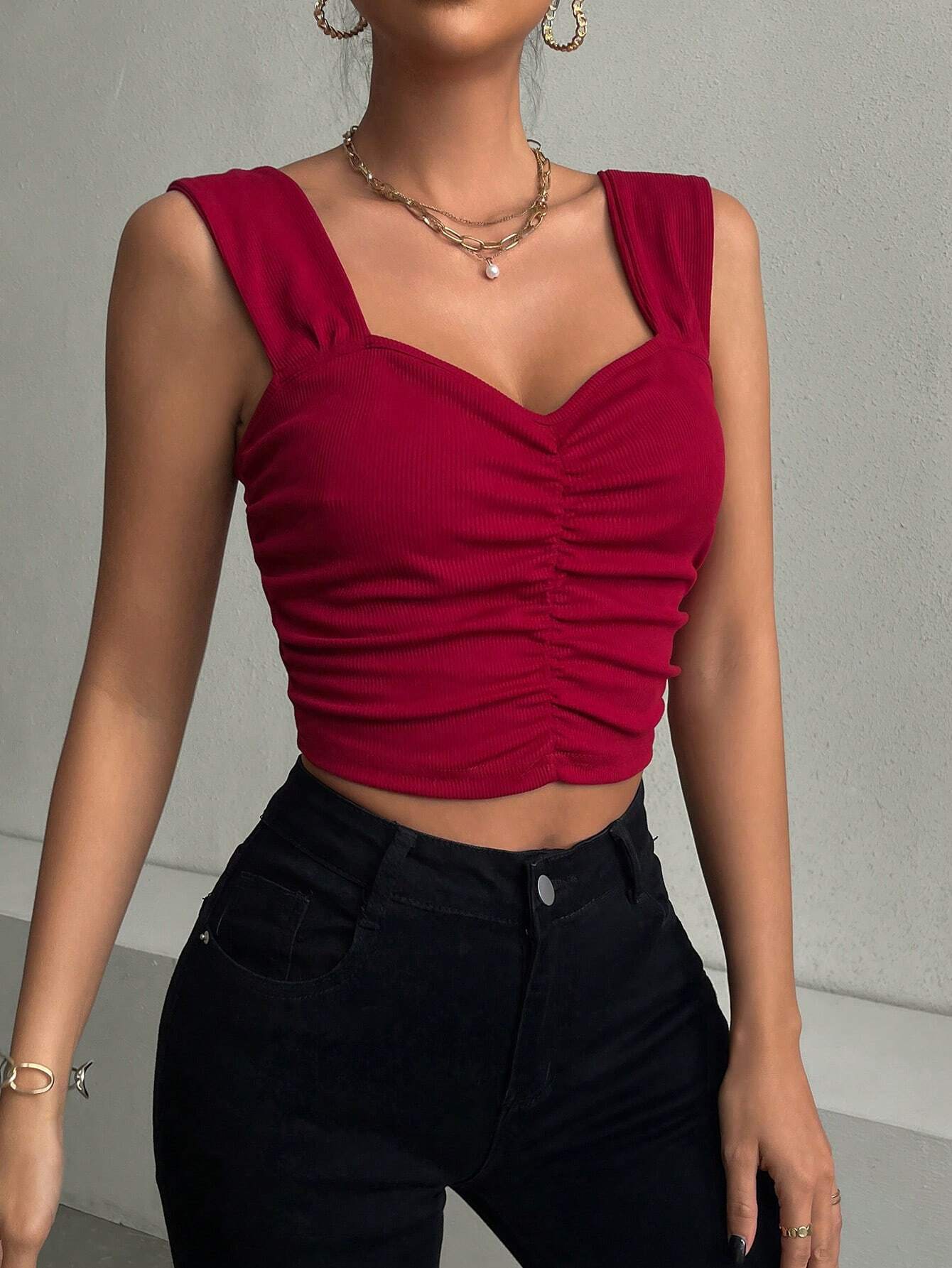 A go-to for Gen Z girls who do the most with the least. The Red Sweetheart Neckline Ruched Top is designed for street wear days when you want to feel styled without trying. It’s cute, compact, and completely in rotation for whatever’s next.