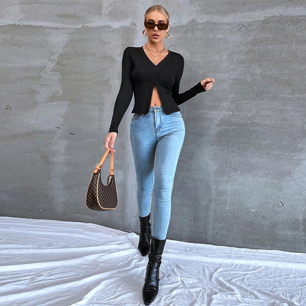 Meet the Black Split Lace Long Sleeve Crop Top,your answer to ‘what now?’ moments. With an easygoing knit and party wear versatility, it’s the kind of piece that levels up simple looks. Style it your way and go where the day takes you.