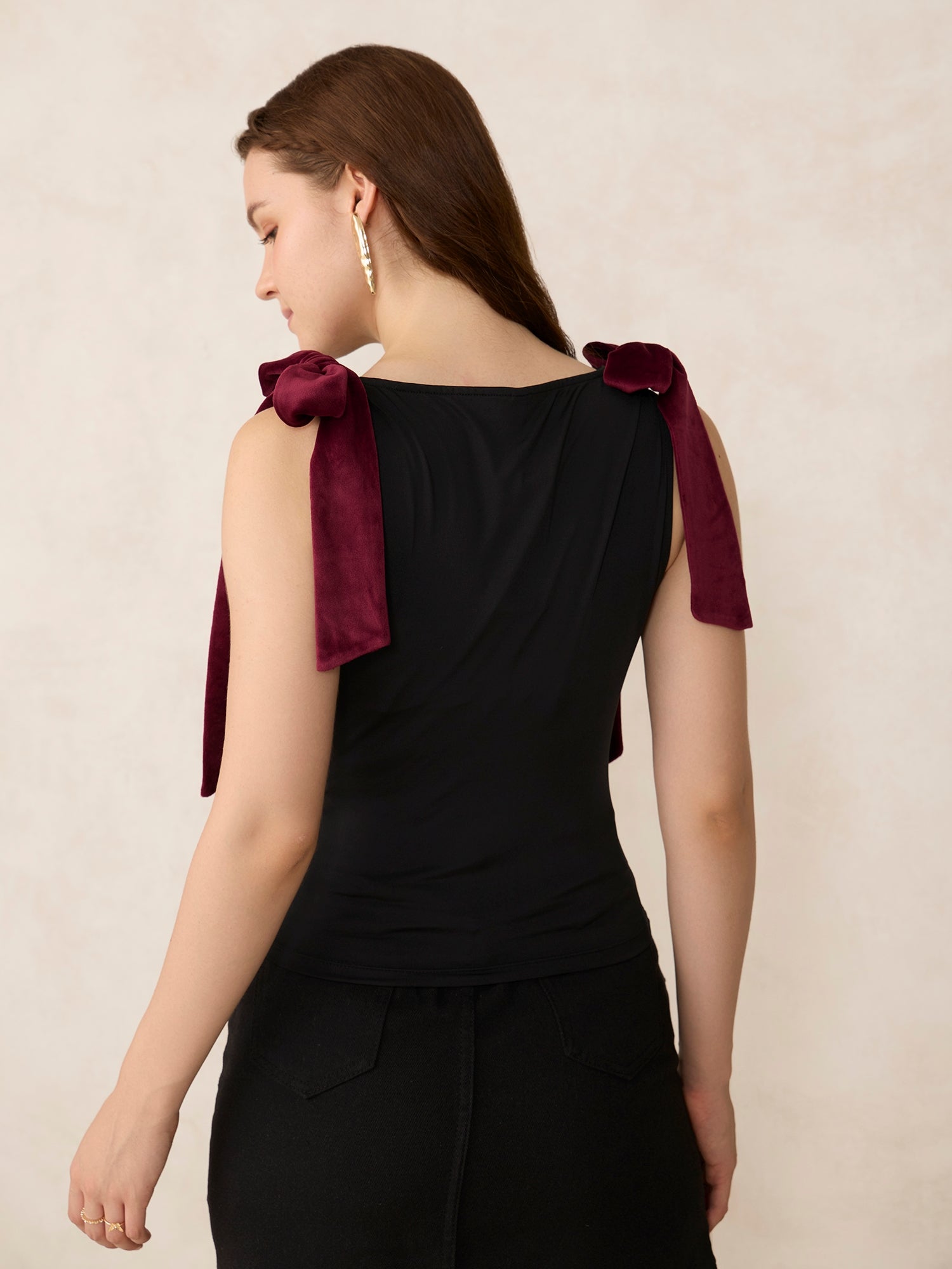 The Black Velvet Bow Detail Knit Top is built for the ‘out in five’ kind of energy. When party wear is on your agenda and chill is the brief, this top is ready to go. Get dressed, get out.
