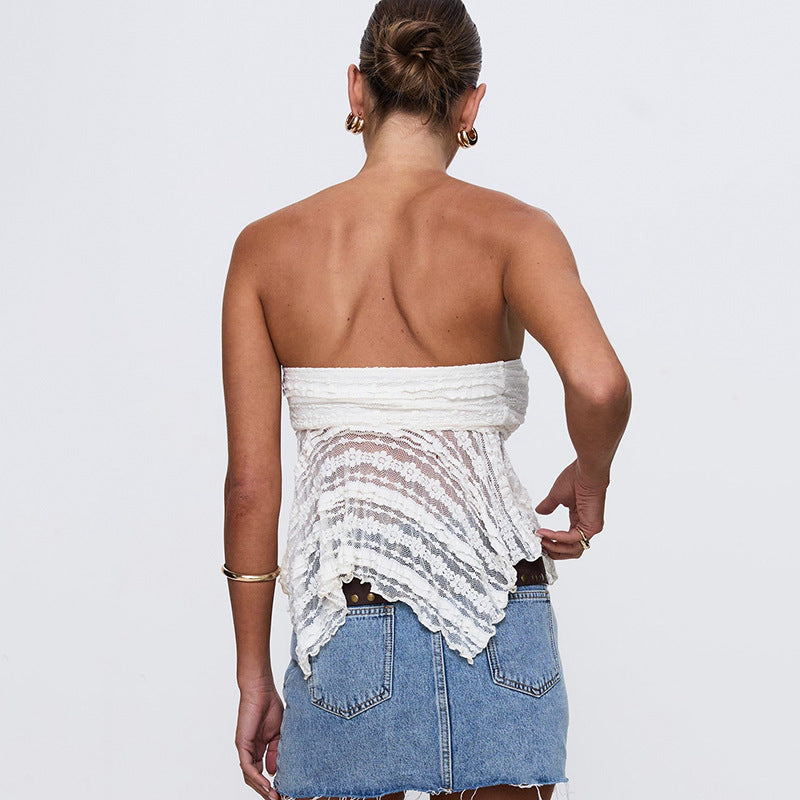 This one’s for your everyday plans and in-between moments. The White Strapless Ruffled Mesh Top nails the brief for street wear moods,clean, comfy, and totally wearable. A no-fuss piece that pairs well with denim or cargos. Your plans just found their match.