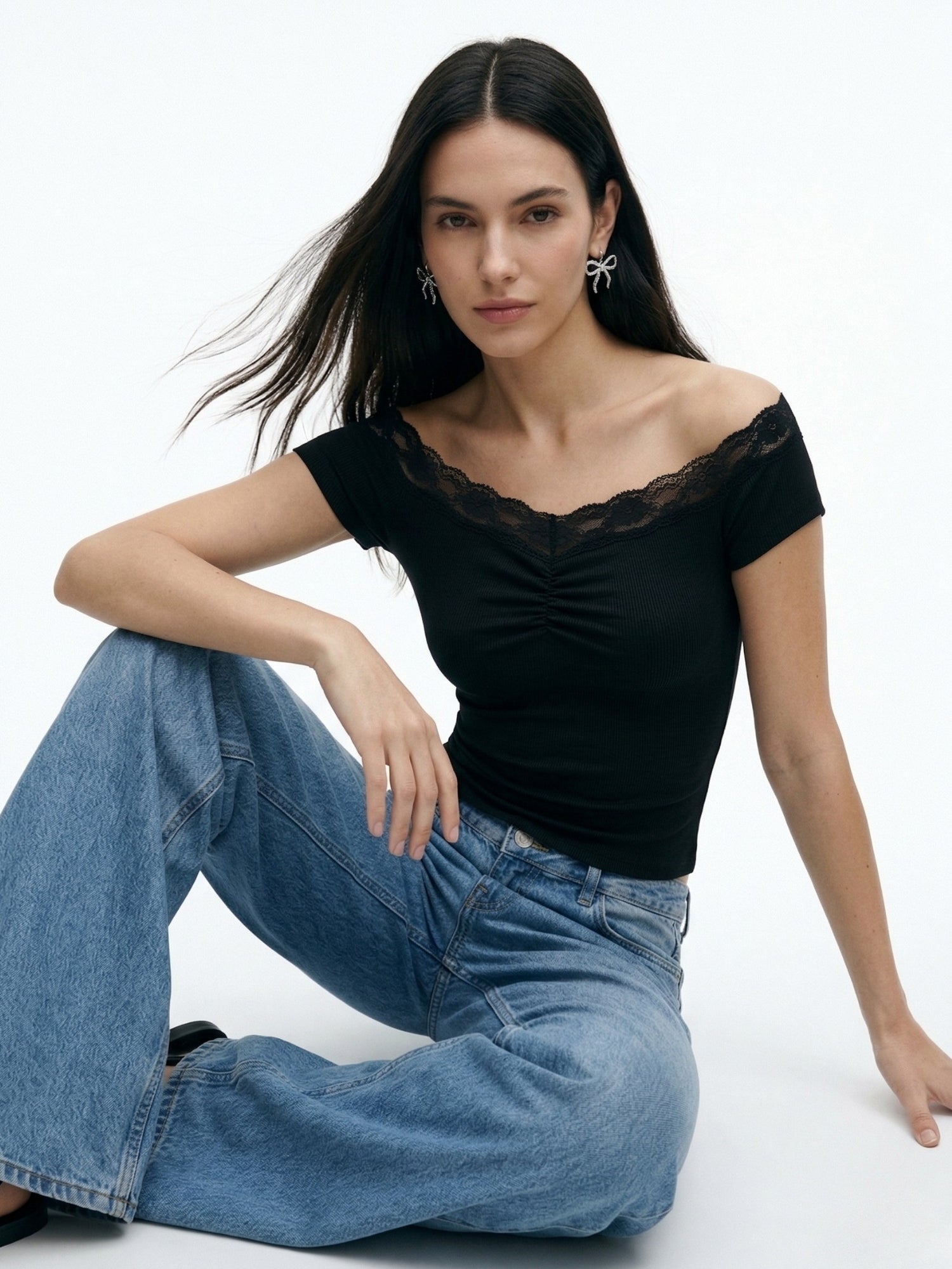 Black Off Shoulder Lace Detail Top