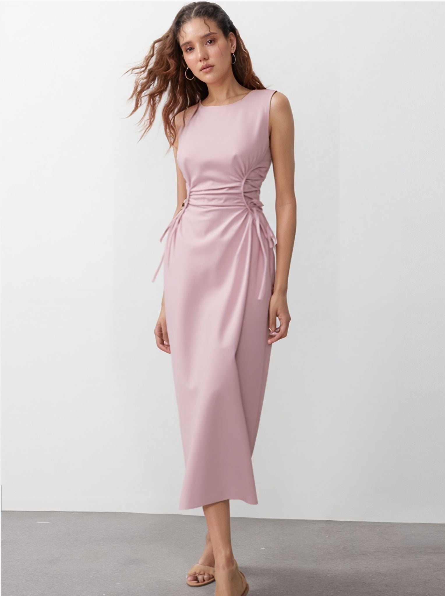 This soft pink elasticated cinched-waist dress adds a feminine touch to your wardrobe. The cinched waist design is perfect for birthday celebrations and afternoon tea. Pair it with flats for a lovely look during picnic dates or relaxed casual dates with friends.
