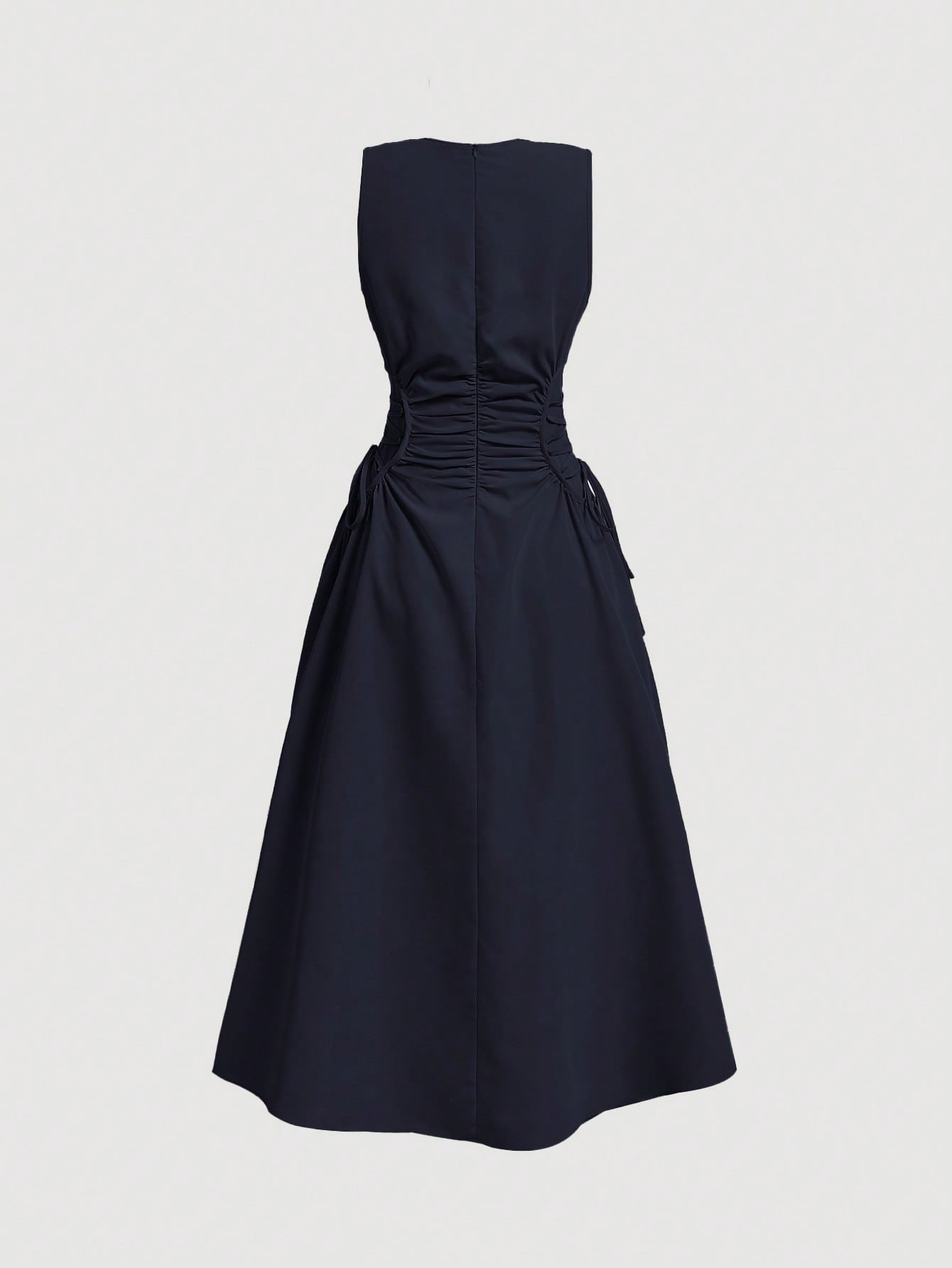 Navy Blue Midi Dress With Exaggerated Waist Detail