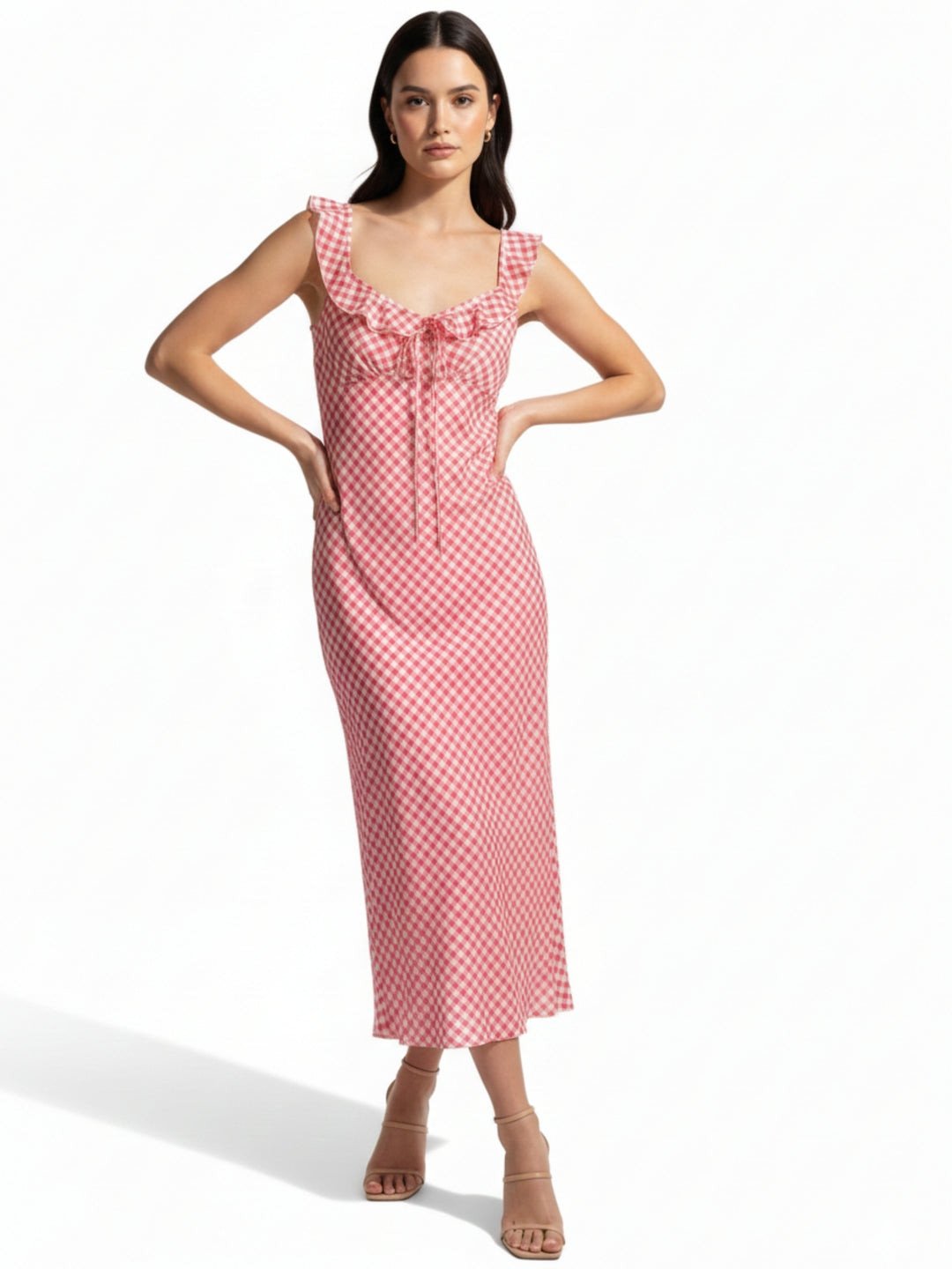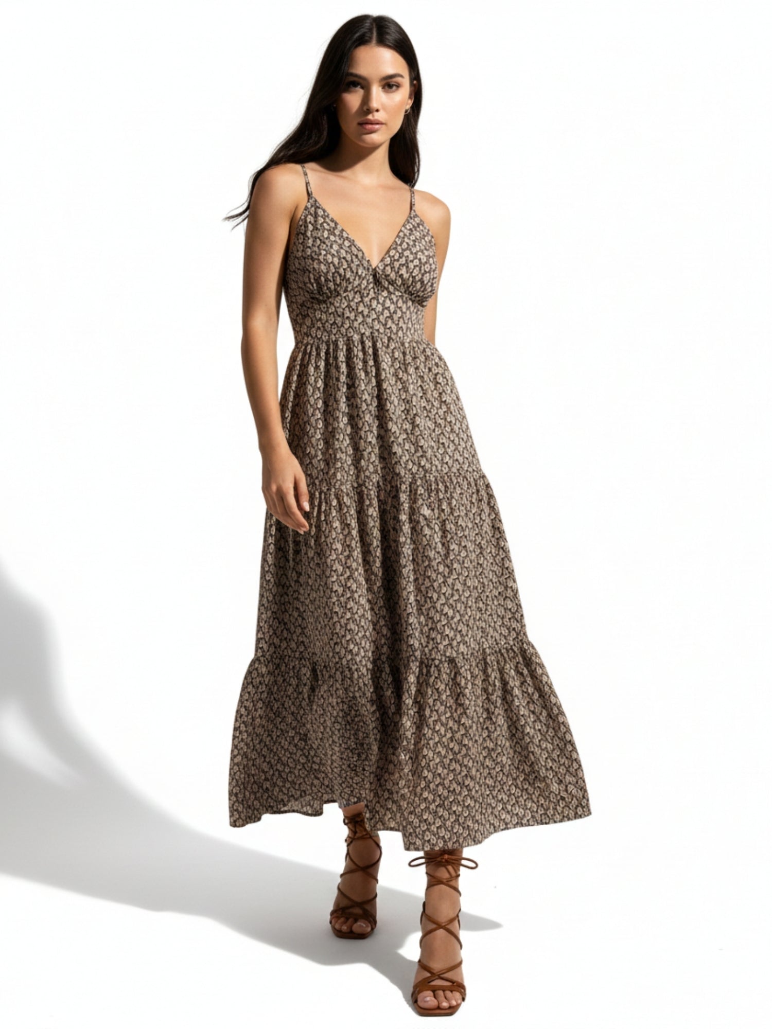 Add a splash of color to your vacation with this coral tiered midi dress. Its flowy, layered design and vibrant coral shade are perfect for summer picnics or beach holidays. A fun and breathable choice that ensures you stay stylish and comfortable during outdoor parties.