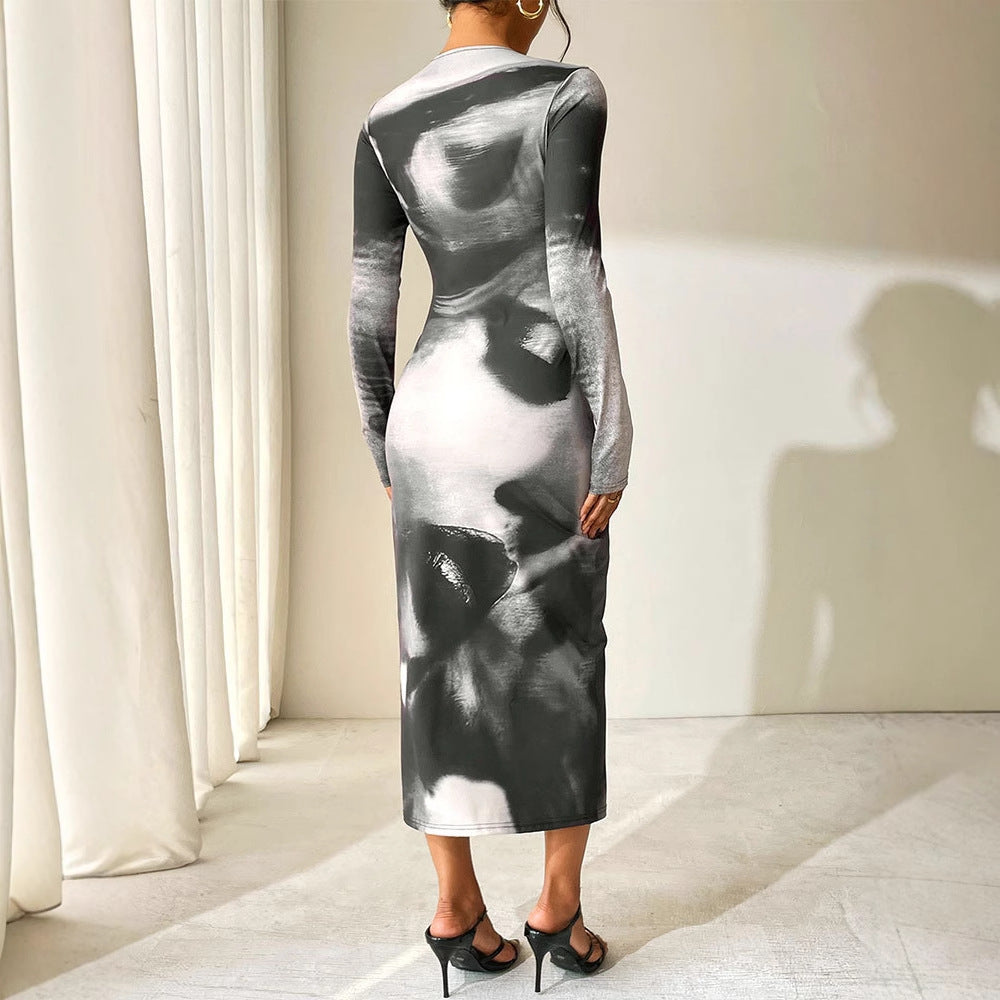Black Tube Printed Mesh Dress