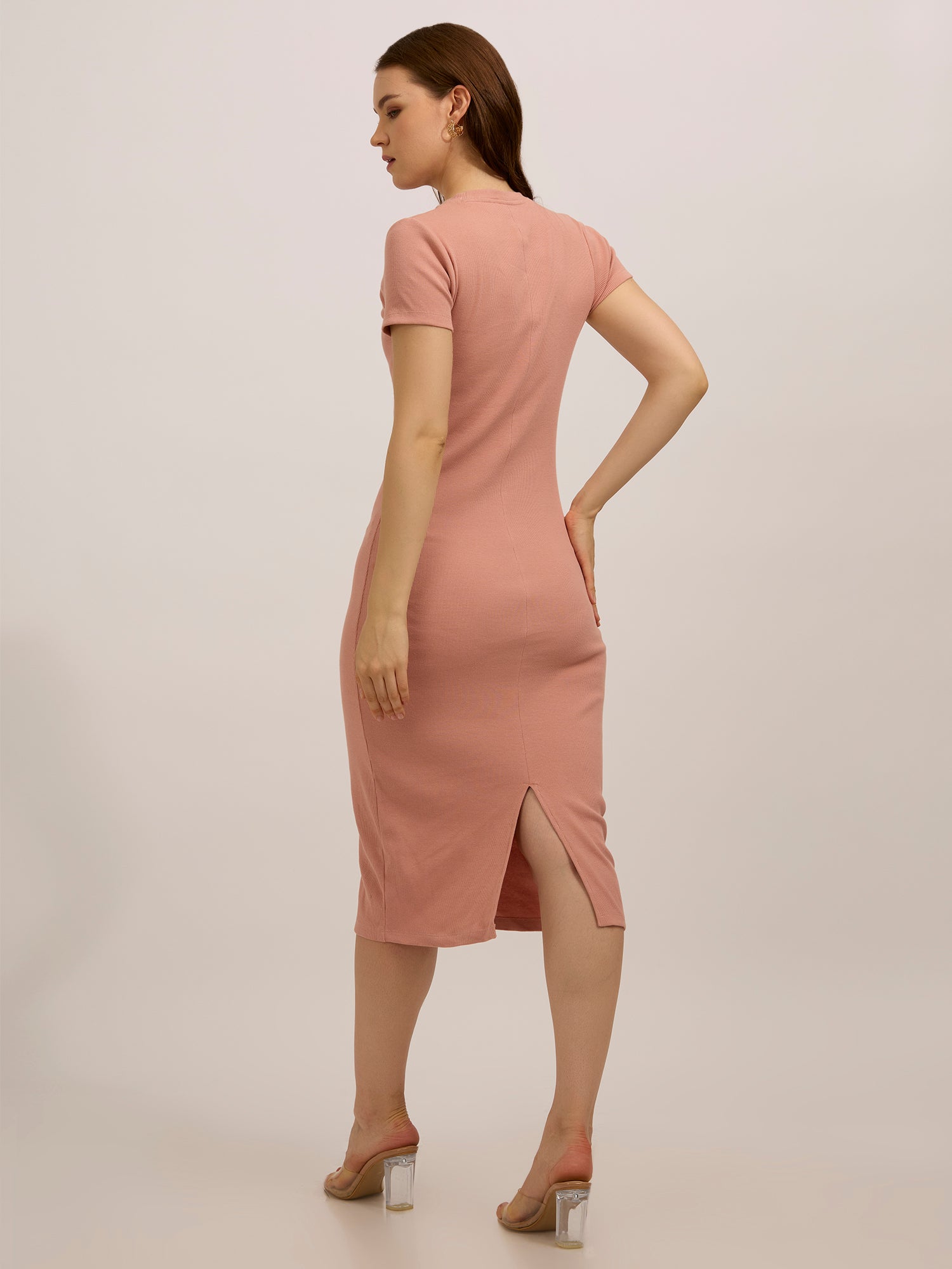 Peach Crew Neck Bodycon T-Shirt Dress