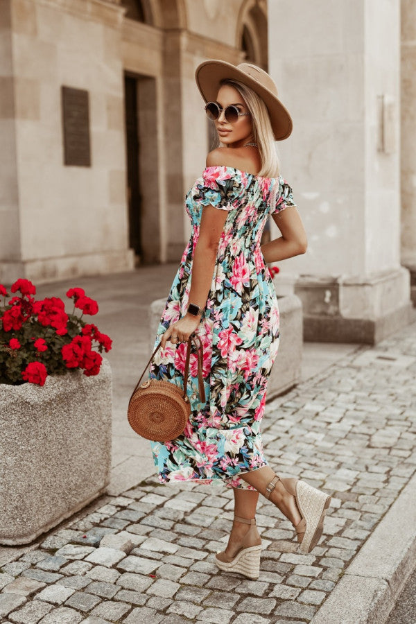 Light Blue Printed Off-Shoulder Dress