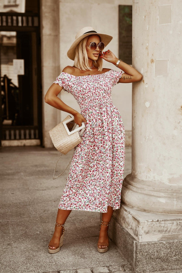 White Printed Off-Shoulder Dress