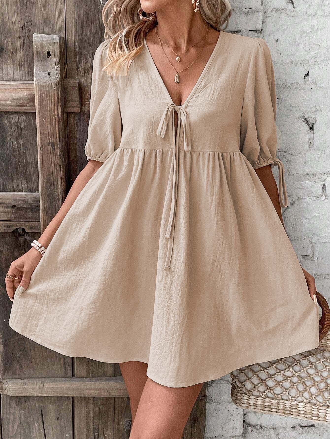 Khaki Front Tie Up Dress
