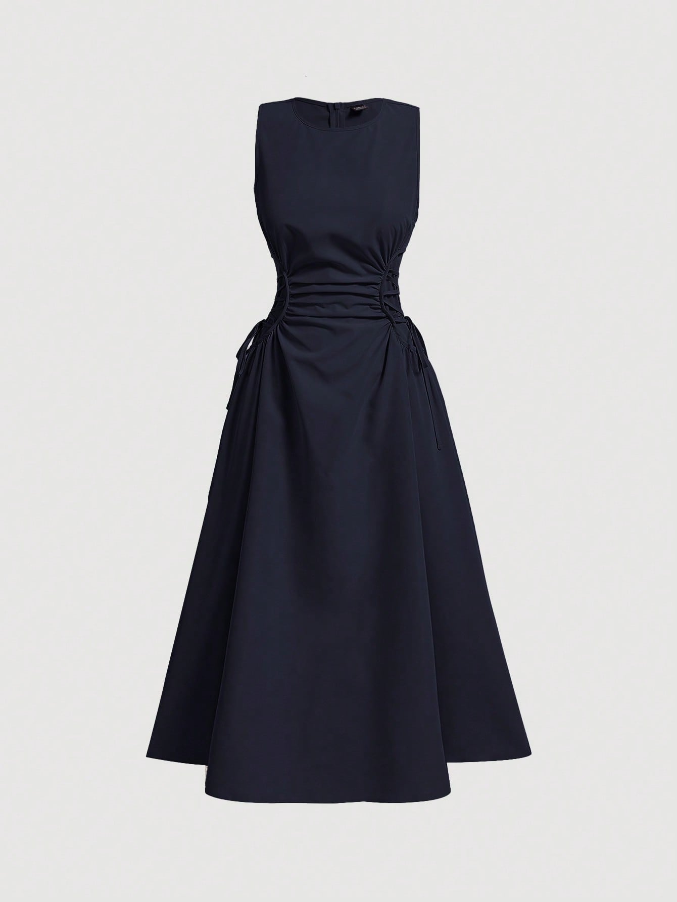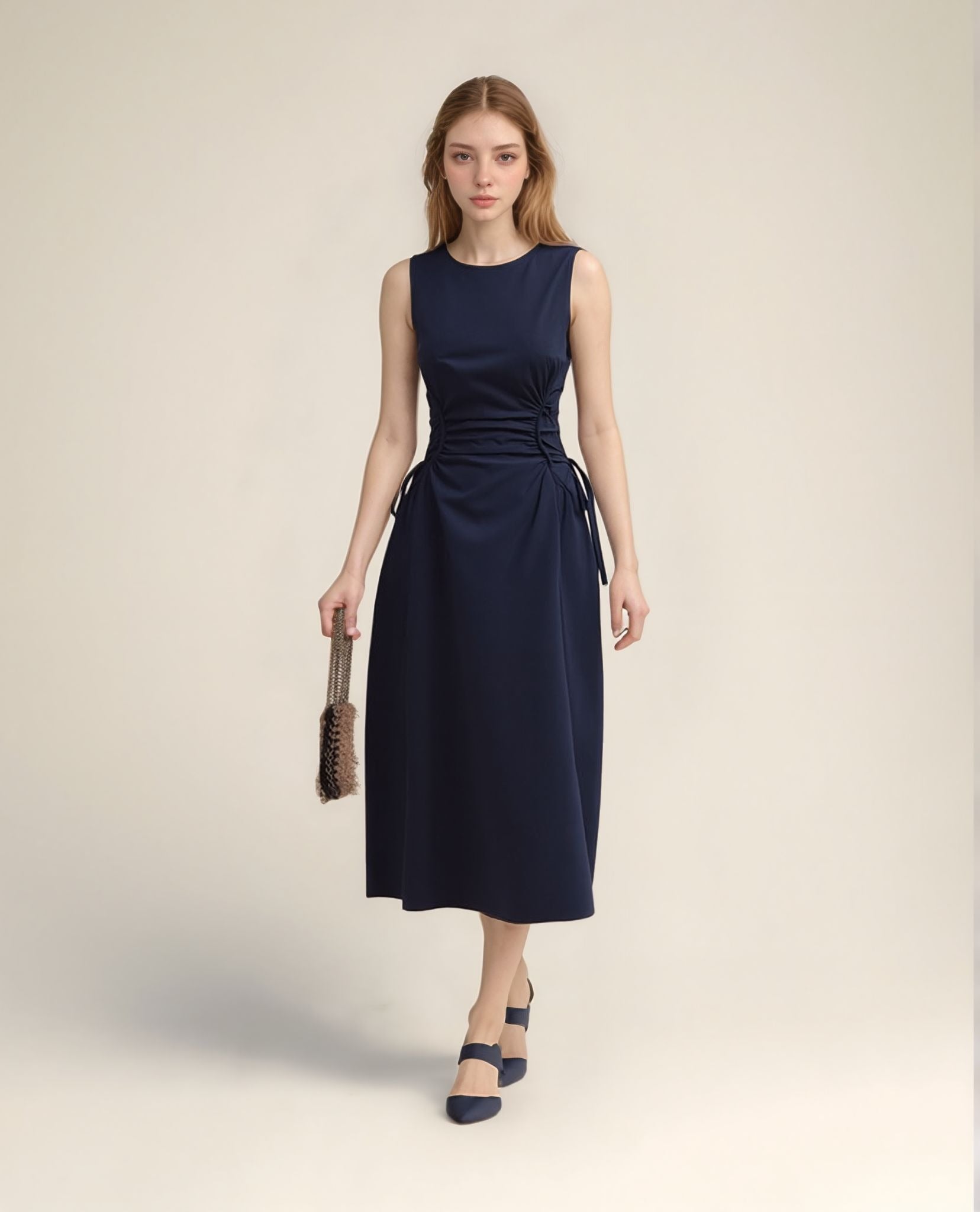 Navy Blue Midi Dress With Exaggerated Waist Detail