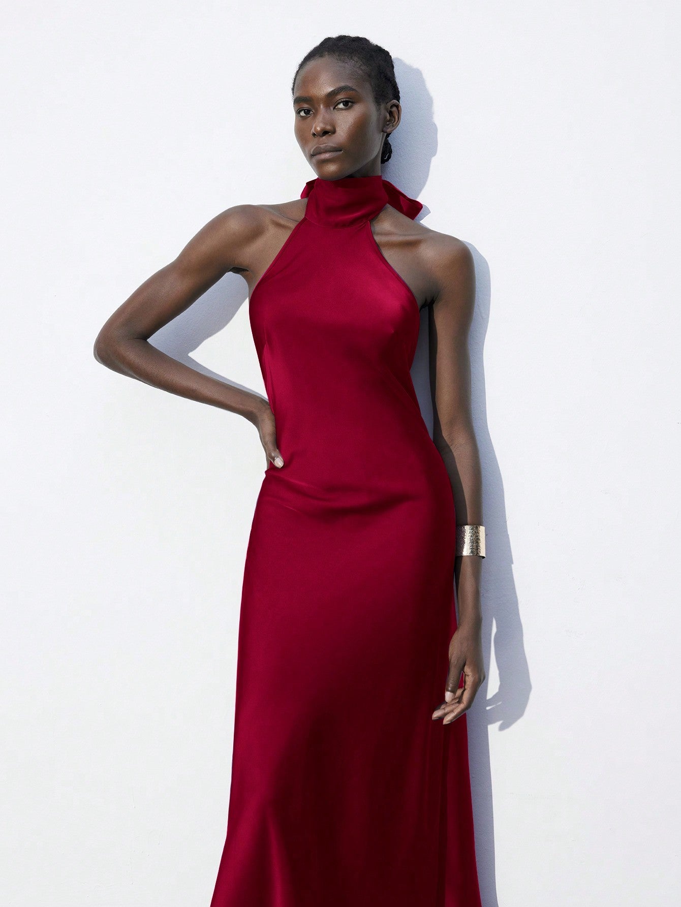 Red Halterneck Midi Dress