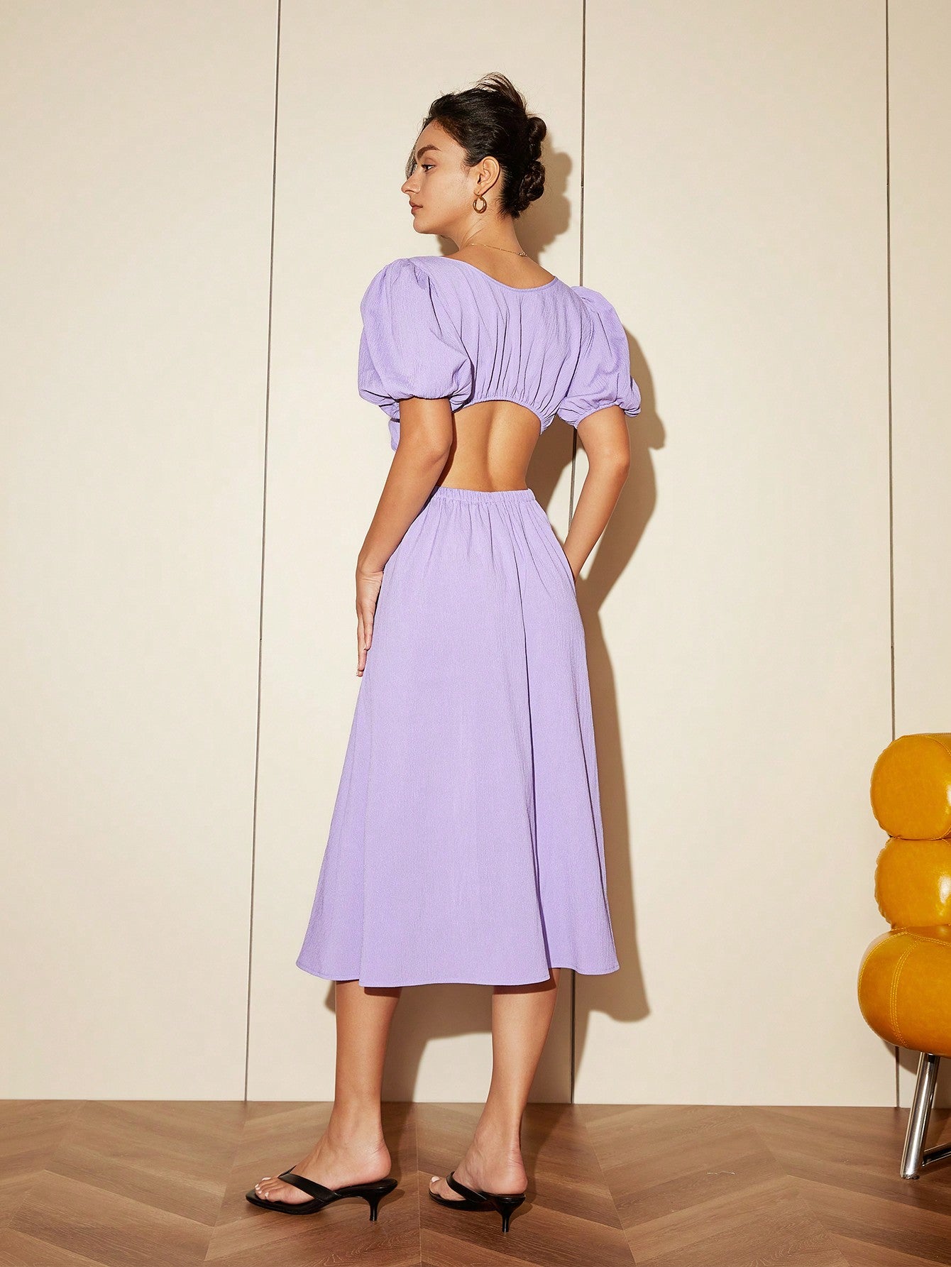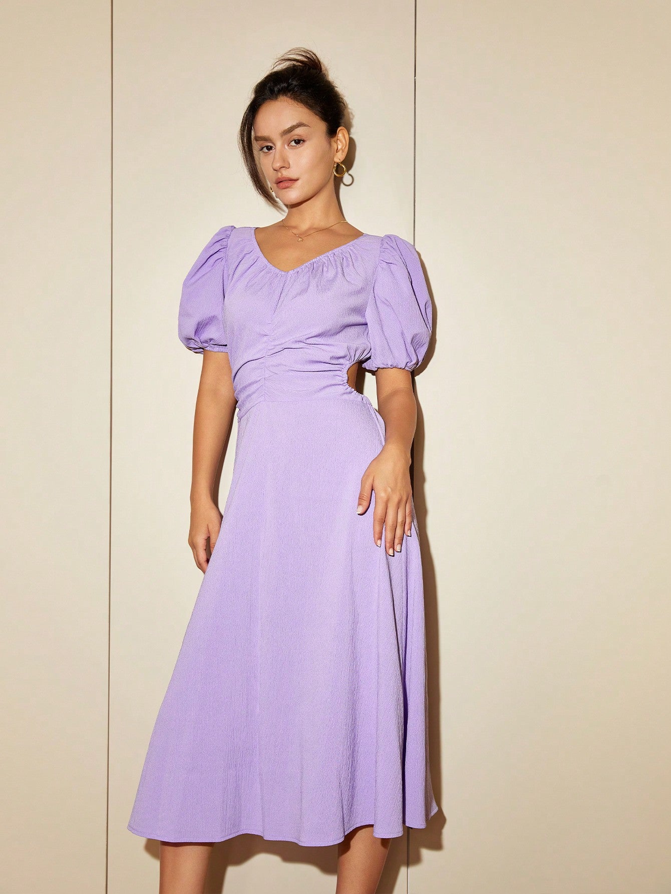 Looking for a Midi Dress with Puff Sleeves? Your search ends here! Explore our lilac midi dresses, perfect for casual wear and travel. Made from soft polyester, this new arrival combines comfort and style for any occasion.