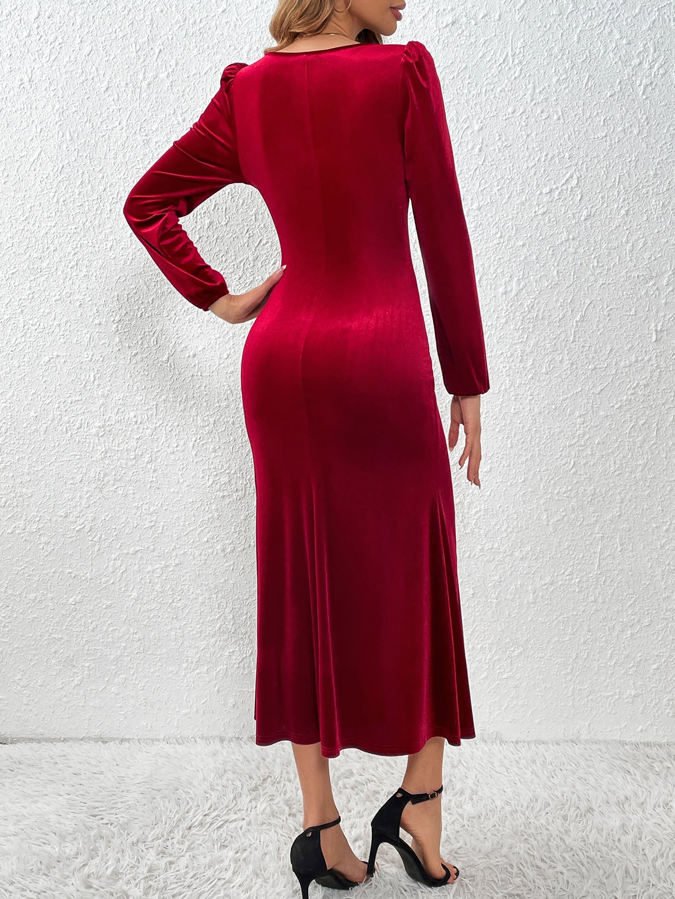 Black Full Sleeved Slit Bodycon Dress