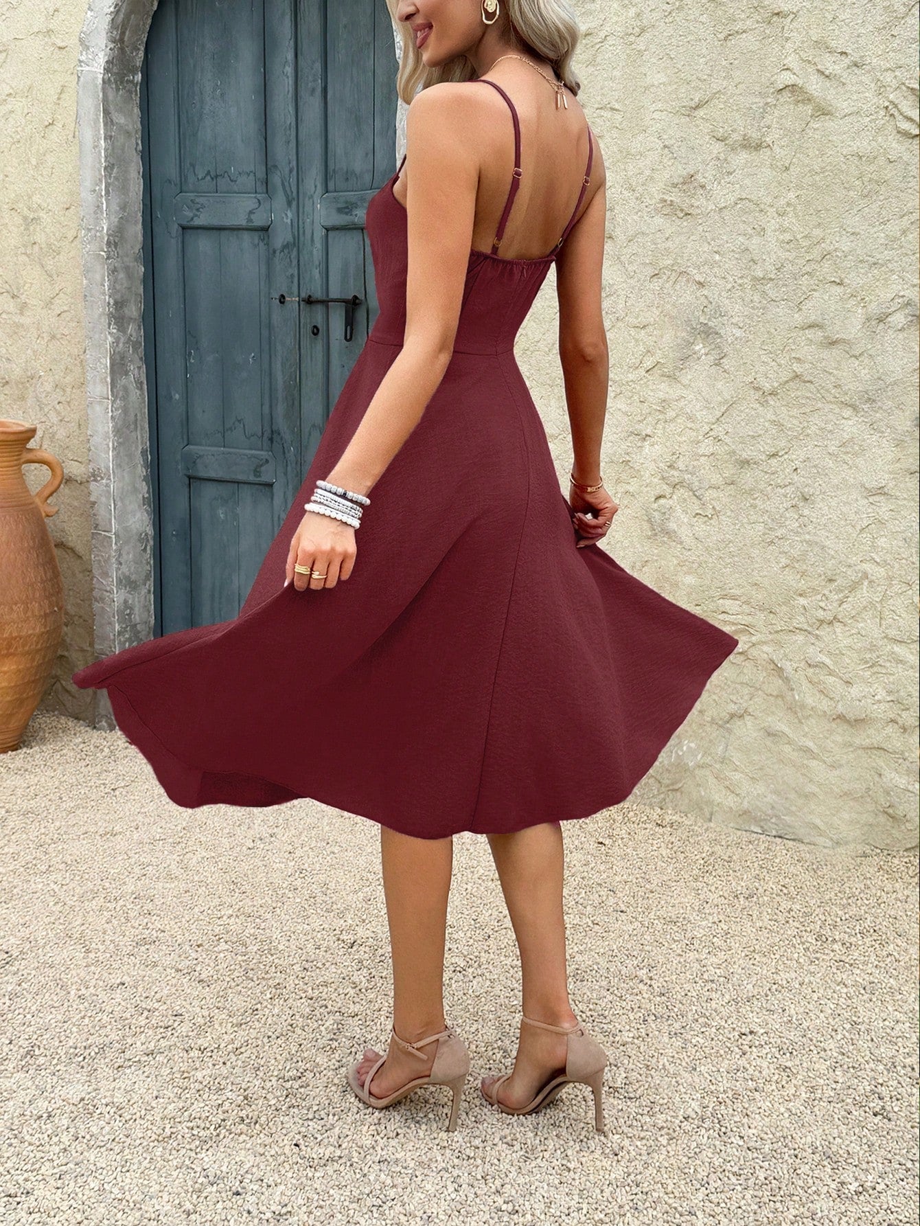 This isn’t your basic midi. With a subtle flare and a flattering shape that brings the energy, it’s a match for last-minute invites and weekend escapes. Whether you're headed to a beach café or just running city errands in style, this one pulls it together. Its light movement and flattering neckline make it ideal for summer layering or one-and-done outfits. Ready to take up space in your vacation outfits lineup.