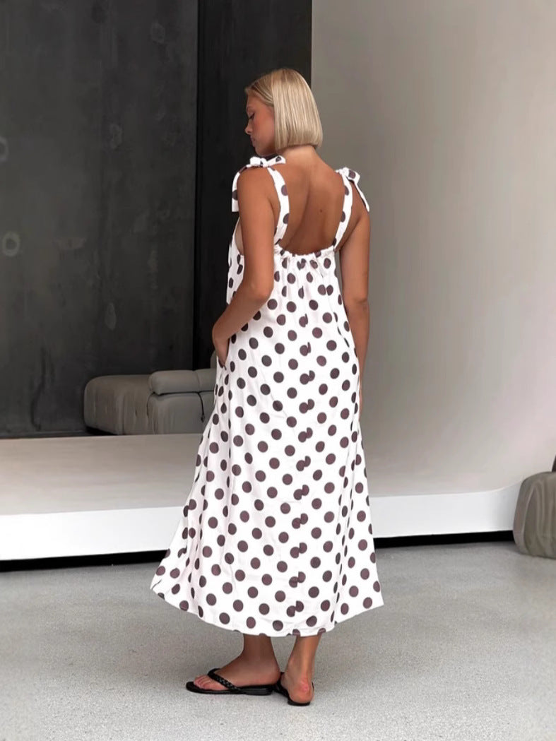 Black Shoulder Strap Back Detail Tie-Up Dress