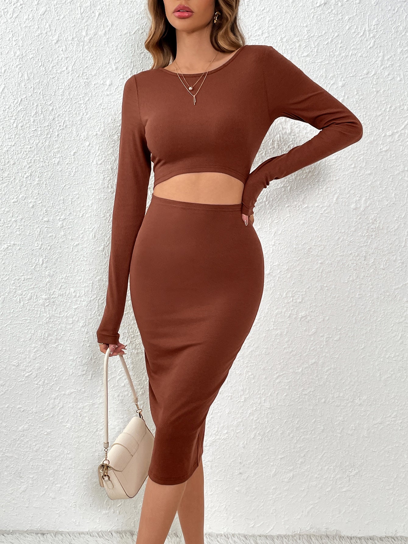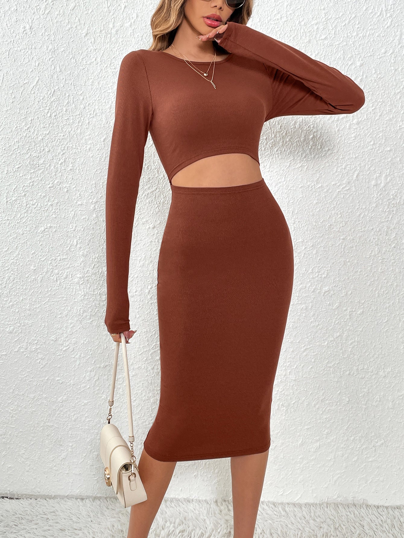 Whether you're stepping into a coffee date, airport terminal, or weekend plan you just RSVP’d to, this midi has you. Its bodycon cut fits smoothly without holding you back. Mid length keeps it smart, while the overall shape adds movement and comfort. If you’re building a closet with repeat-wear power, start here. It’s a midi dress that looks cool without needing “the right angle.”
