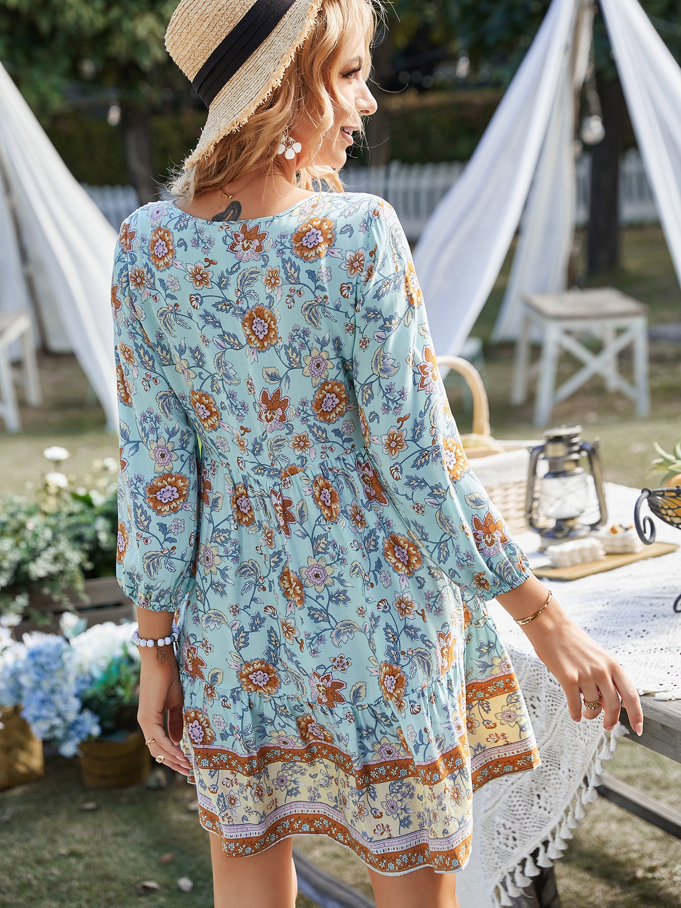 Step into the scene with Blue Printed A-Line Dress, a must-have vacation mini dress designed for vacation moments. The relaxed silhouette hugs the body for a sleek and defined look. Comfortable yet elevated, it’s ideal for evening events, birthday plans, or your next city outing. Add some glam with accessories or keep it simple,it works either way. A perfect blue addition to your occasion-ready wardrobe.