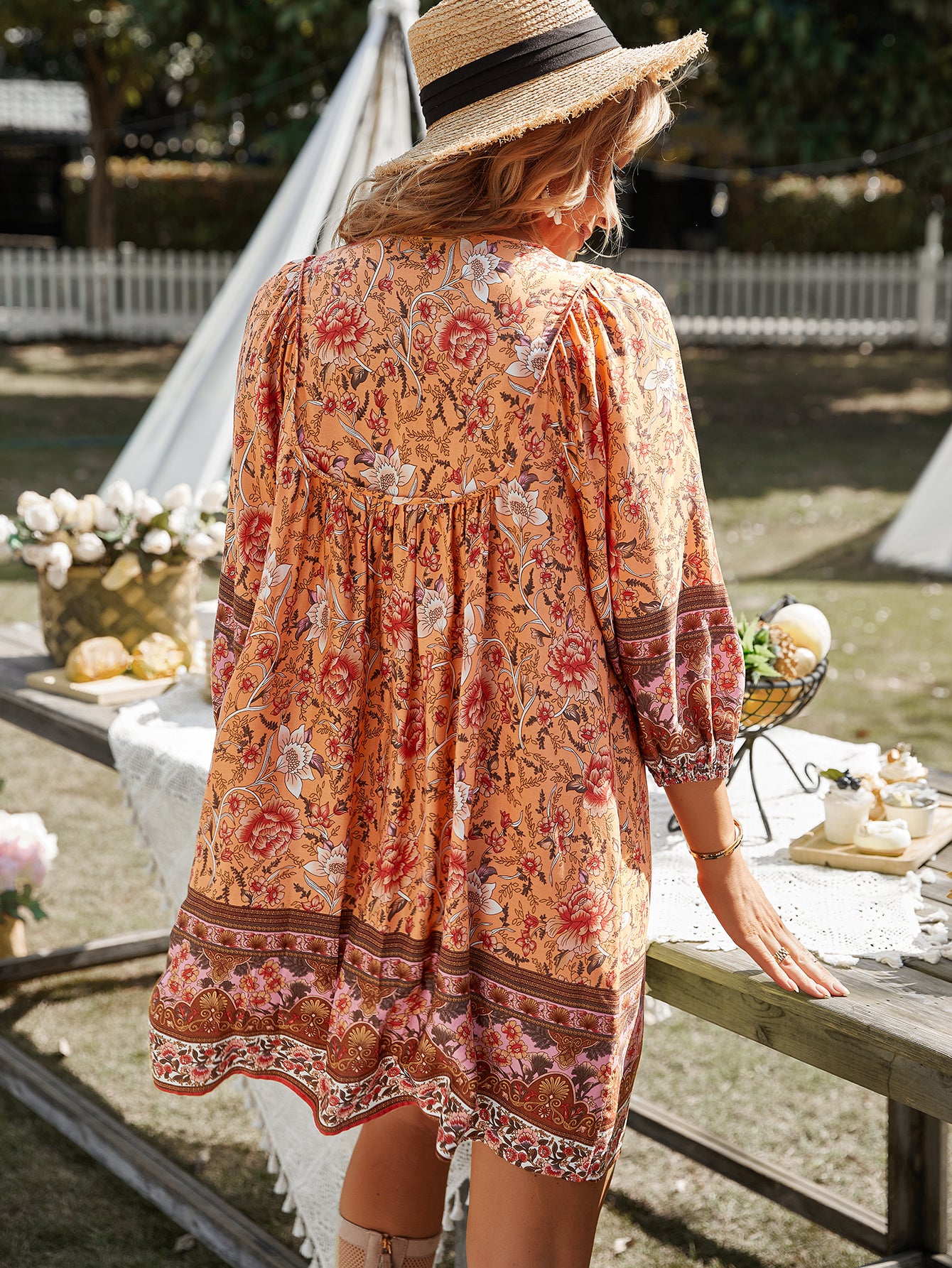 Rust Printed A-Line Dress fits your schedule. It’s a relaxed vacation mini dress made for vacation moments. Throw on a denim jacket or wear it solo,it works both ways. Its this tone blends into your wardrobe while still standing out. Easy to wear, easy to love.