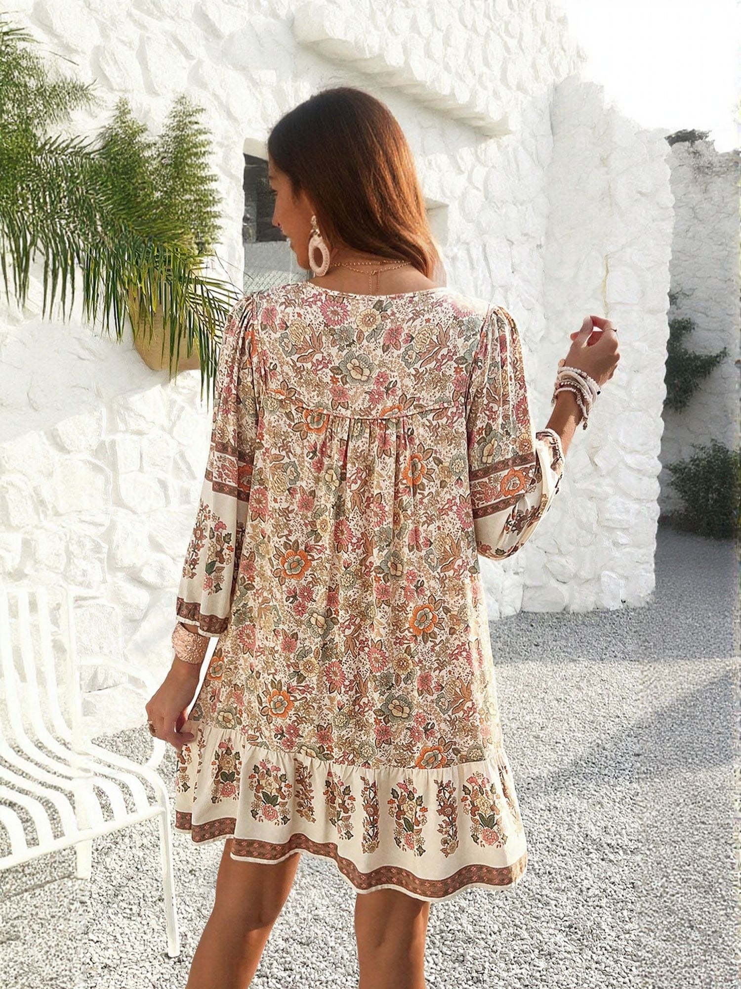 Simple, stylish, and made for going out,Cream Floral Printed A-Line Boho Dress checks all the boxes. The a-line silhouette and easy design make it the vacation mini dress you’ll reach for again and again. Style it for vacation moments with ease, whether you're heading to town or a friend’s party.