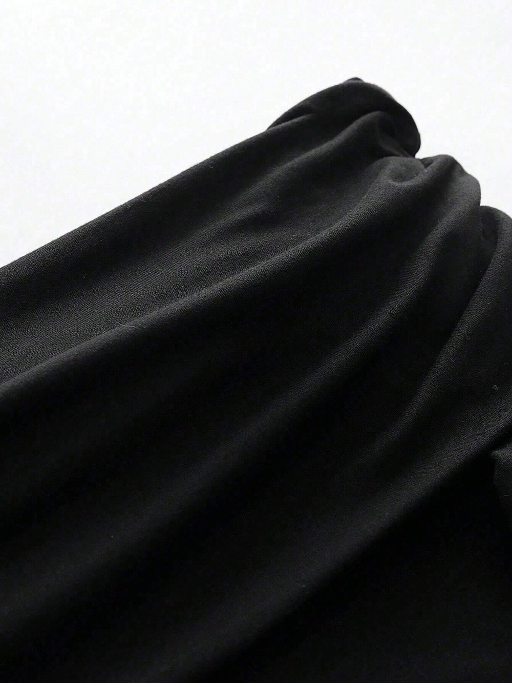 Black Off-Shoulder Side Tie Up Ruching Dress