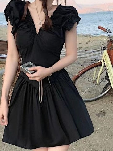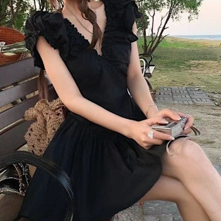 Simple, stylish, and made for going out,Black V Neck Fit And Flare Mini Dress checks all the boxes. The fit & flare silhouette and easy design make it the vacation mini dress you’ll reach for again and again. Style it for vacation moments with ease, whether you're heading to town or a friend’s party.
