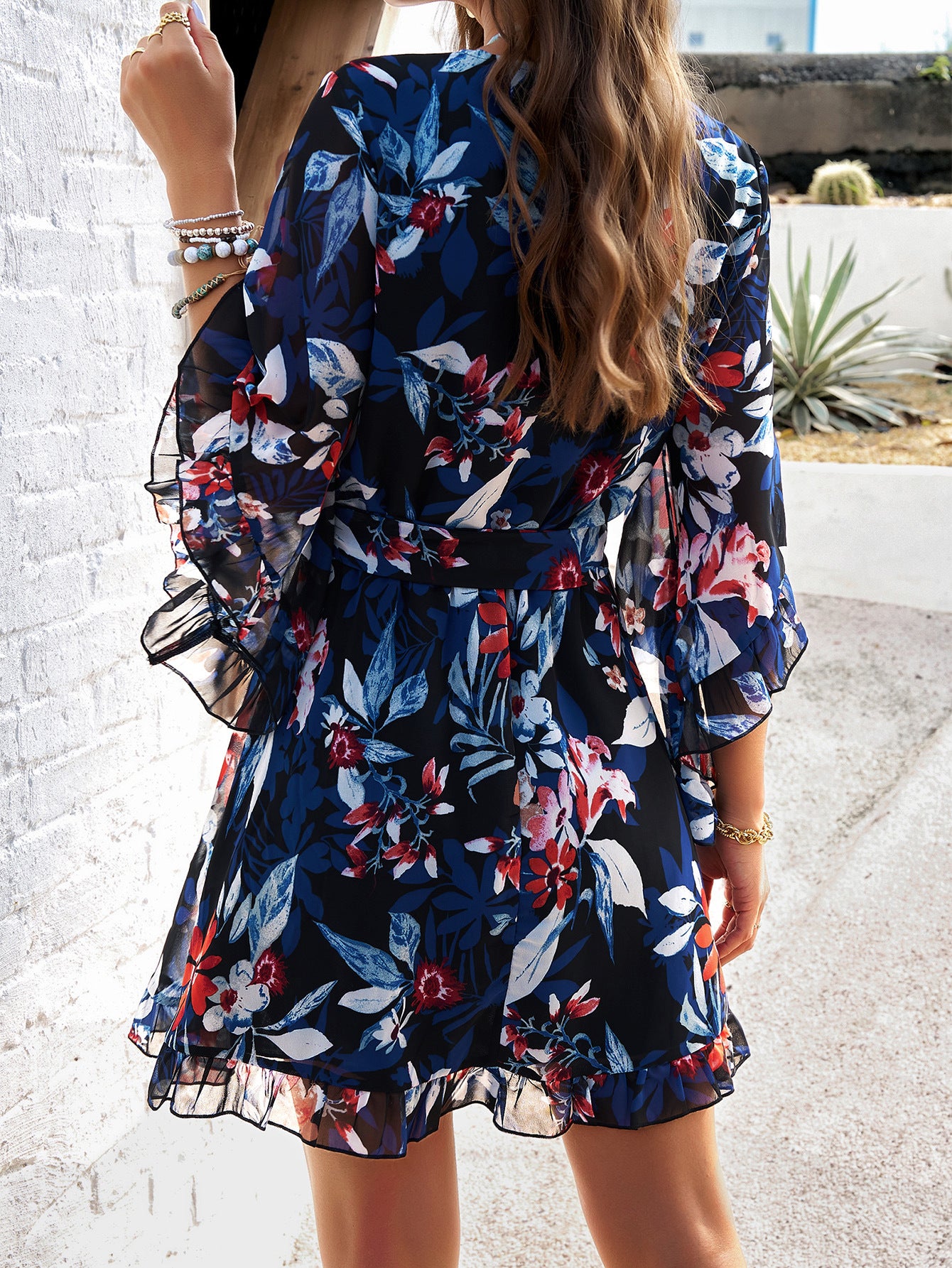 Designed to elevate your vacation moments, Black V-Neck Bell Sleeves Mini Dress is a skater vacation mini dress that blends comfort with confidence. Its figure-hugging design ensures a flattering shape while giving you full freedom to move. A versatile option for night outs, casual hangouts, or weekend plans, this black mini dress makes getting ready easy. Match it with your favorite footwear and you're out the door.