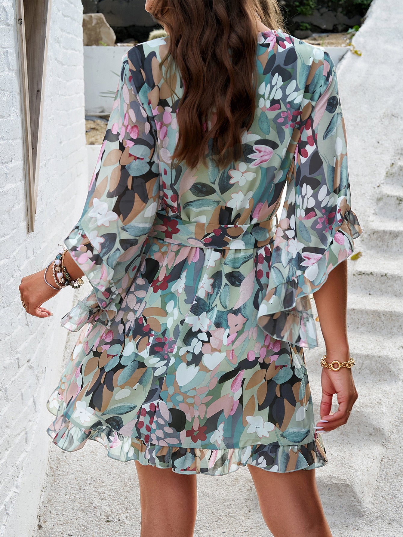 Own your next outing with Green V-Neck Bell Sleeves Mini Dress. Built in a clean skater design, this this vacation mini dress is ideal for vacation moments. Whether it’s brunch or a night out, it pairs well with jackets, bags, or statement accessories. Made to fit close and move with ease, it’s the reliable dress for when you need style that works.