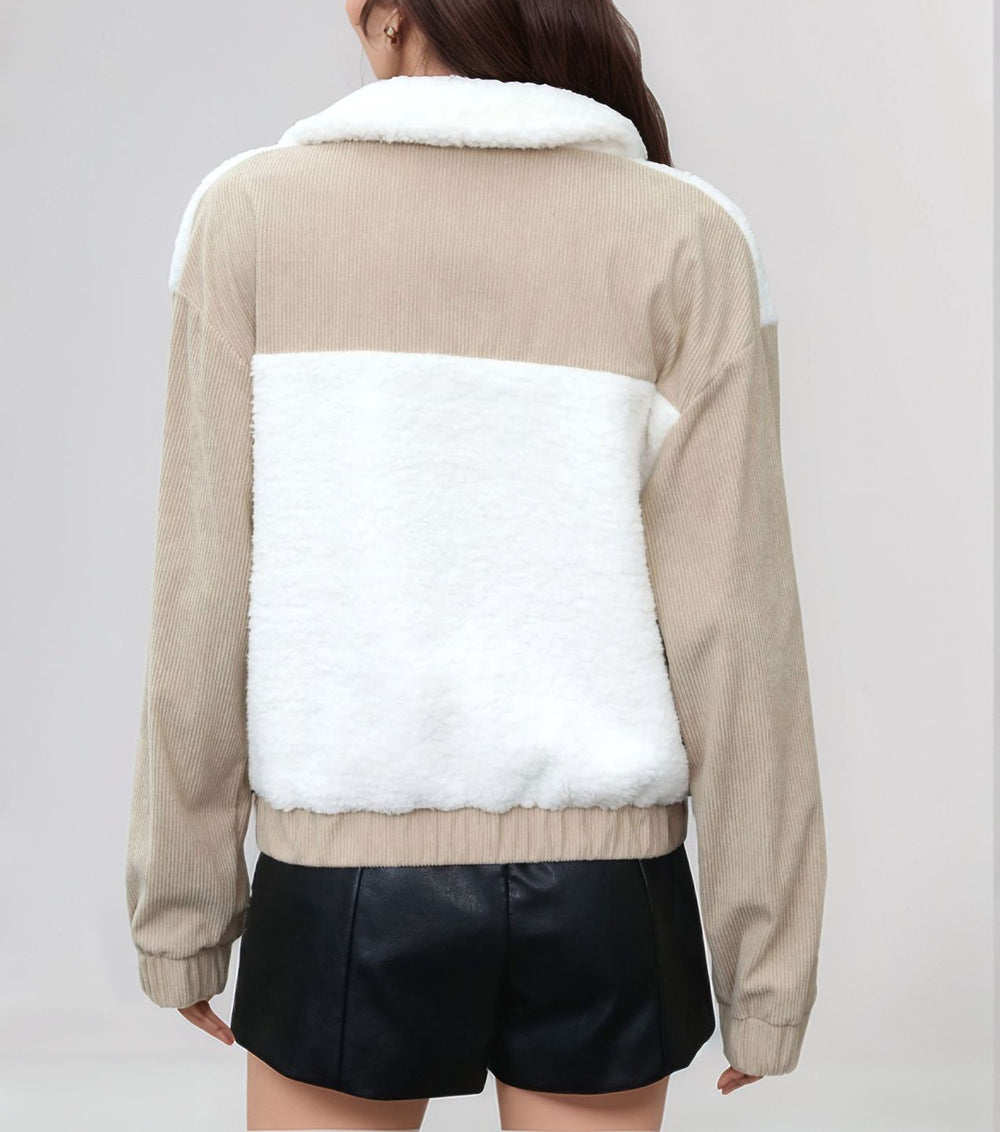 White Full Sleeve Contrast Panel Double Pocket Jacket