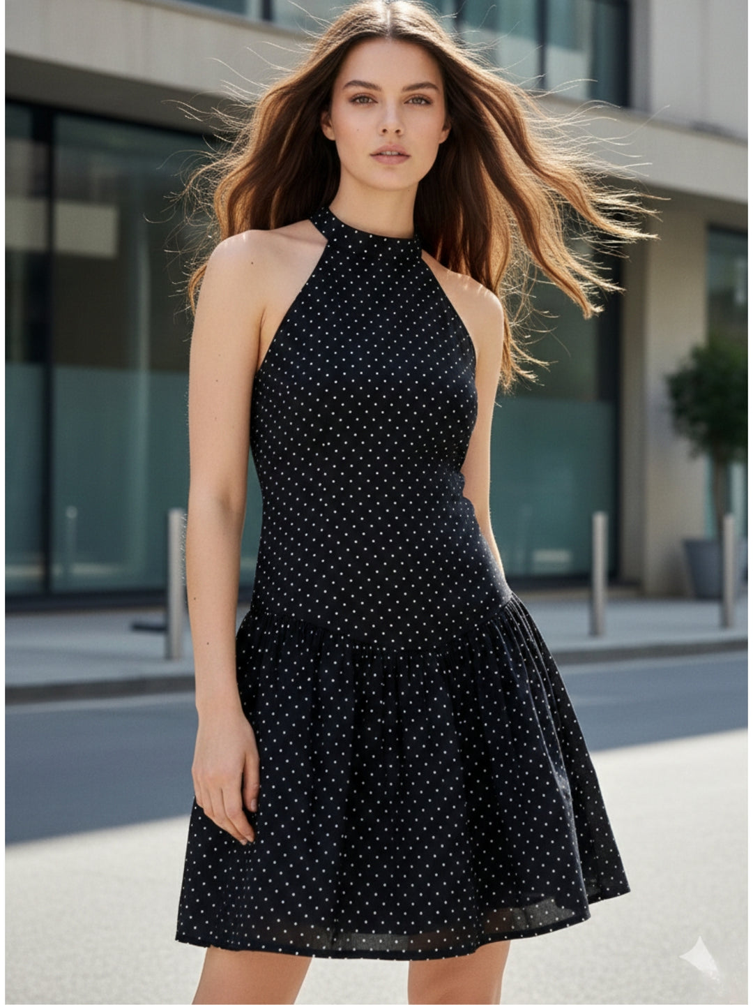 Black Polka-Dot Ruffled Mini Dress