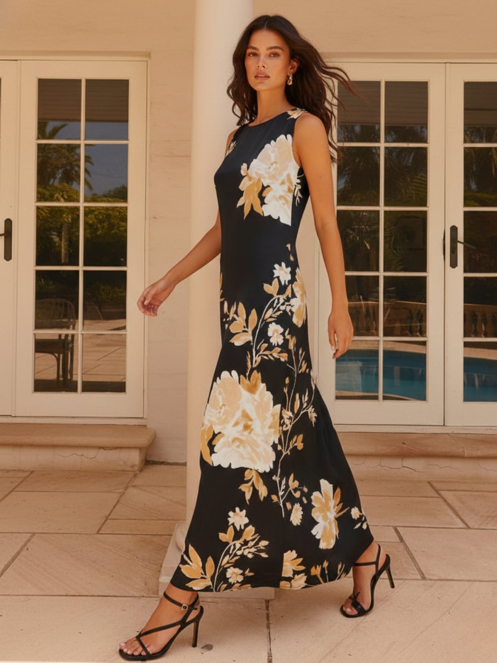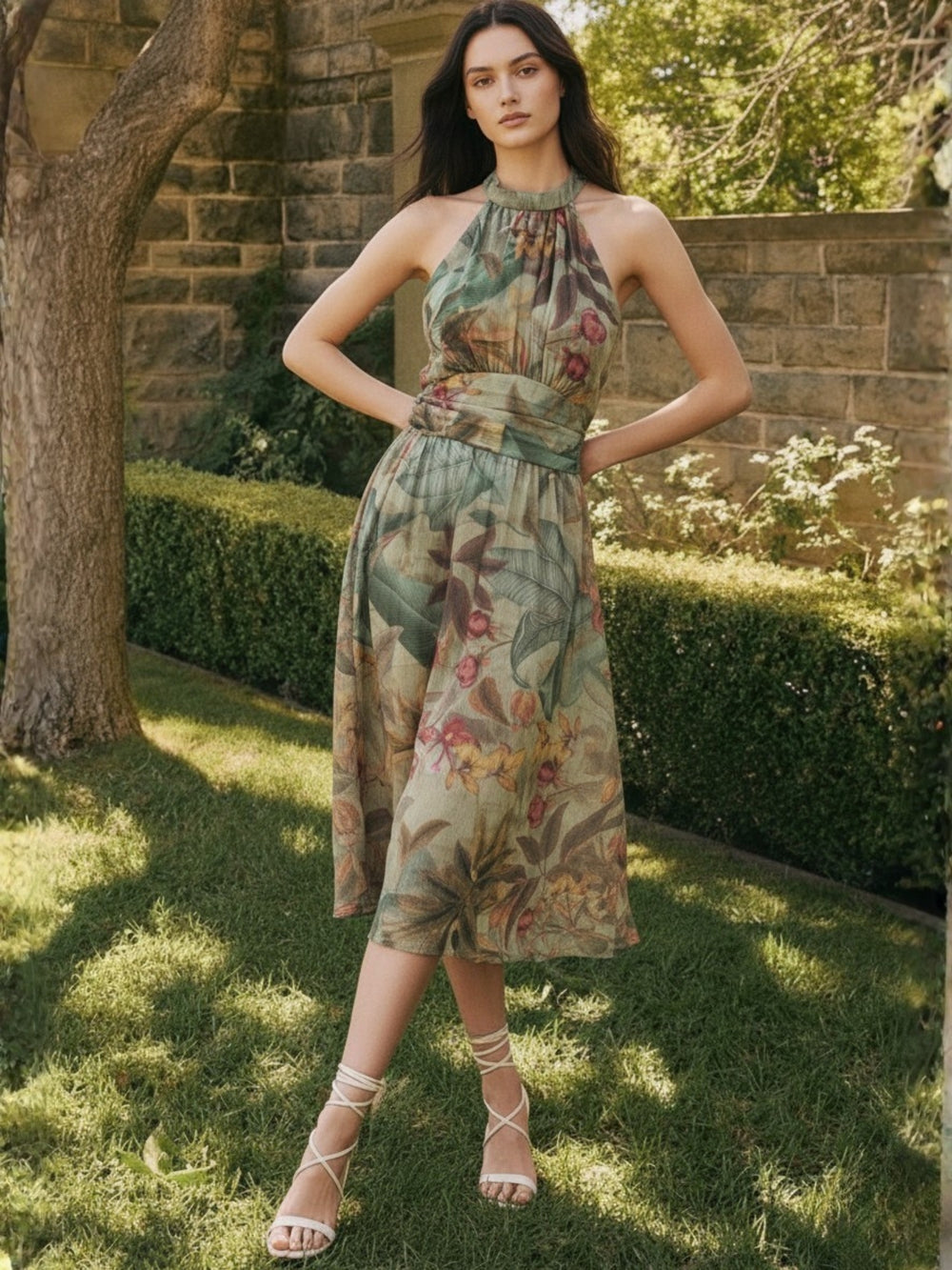 This green printed halter neck maxi dress is a vibrant choice for your next tropical vacation. The floral print and halter neckline create a stunning boho maxi dress silhouette. Ideal for beach weddings or garden parties, it is a breathable and stylish gown for all your summer socials.