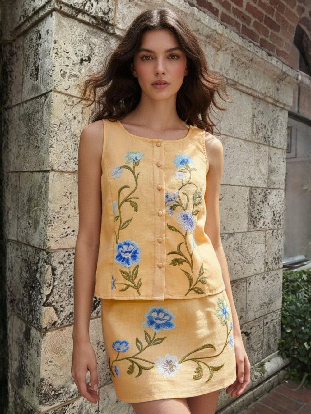 Brighten up your look with this yellow woven co-ord set featuring a beautiful floral print detail. This vibrant matching set is the perfect summer floral outfit for vacation outings or summer parties. Style this woven matching set together for resort wear or mix and match for weekend trips.