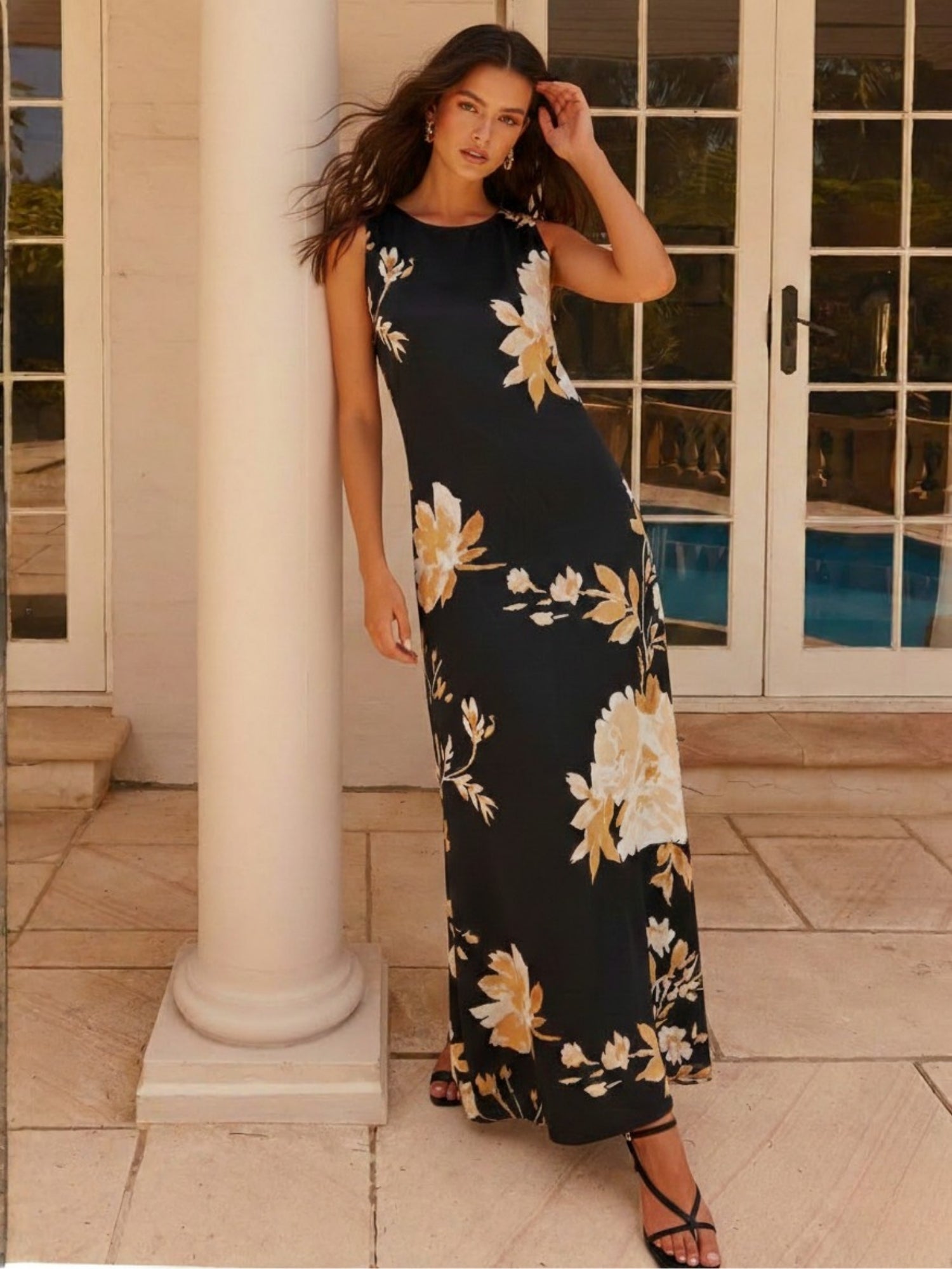 Exude timeless sophistication in this navy blue sleeveless satin maxi dress. The silky fabric and floor-length design make it a stunning formal evening dress for black tie events or formal weddings. Complete this elegant maxi look with silver jewelry for gala dinners or evening socials.