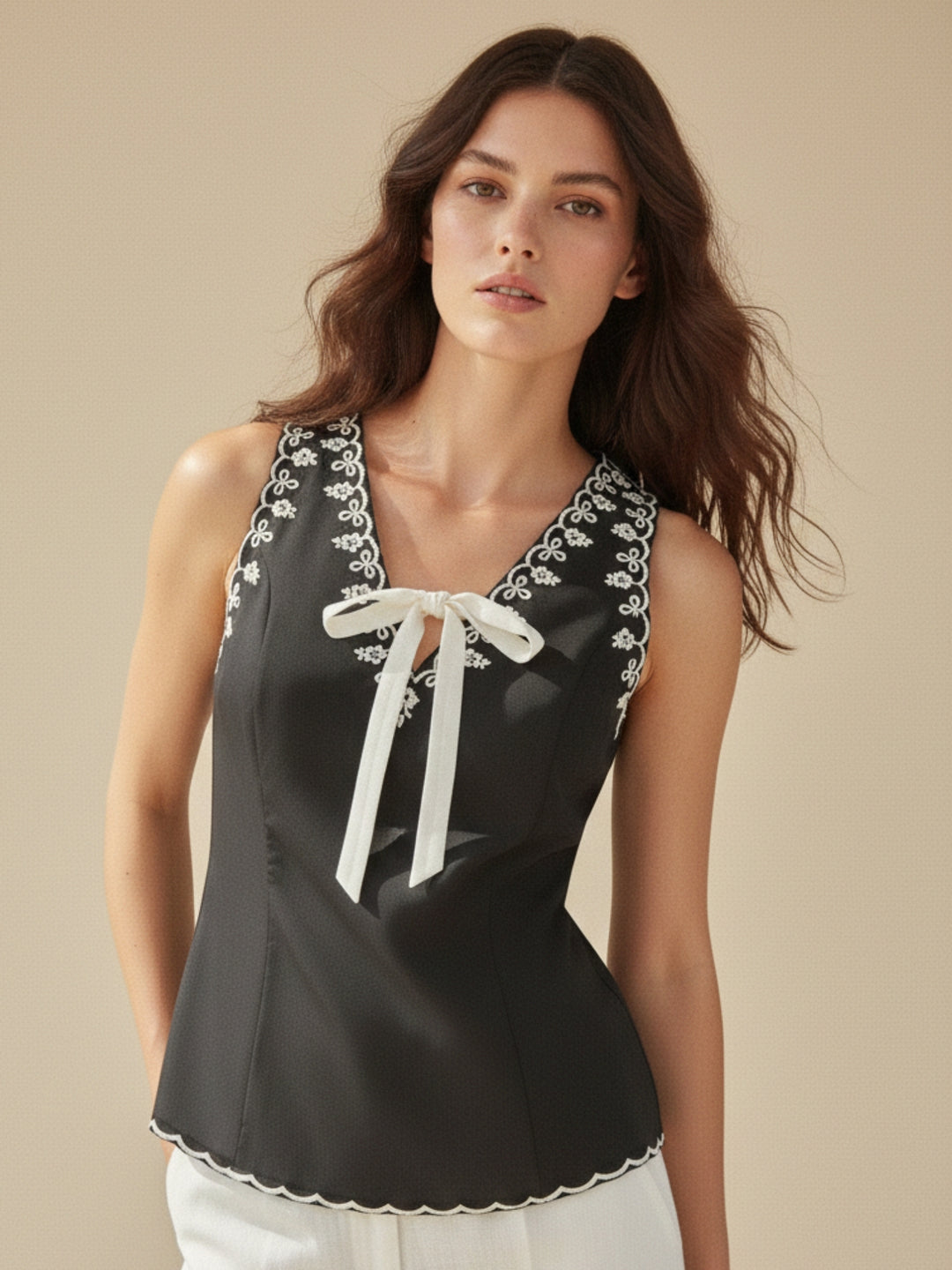 Black Front Tie Detail For A Feminine Finish