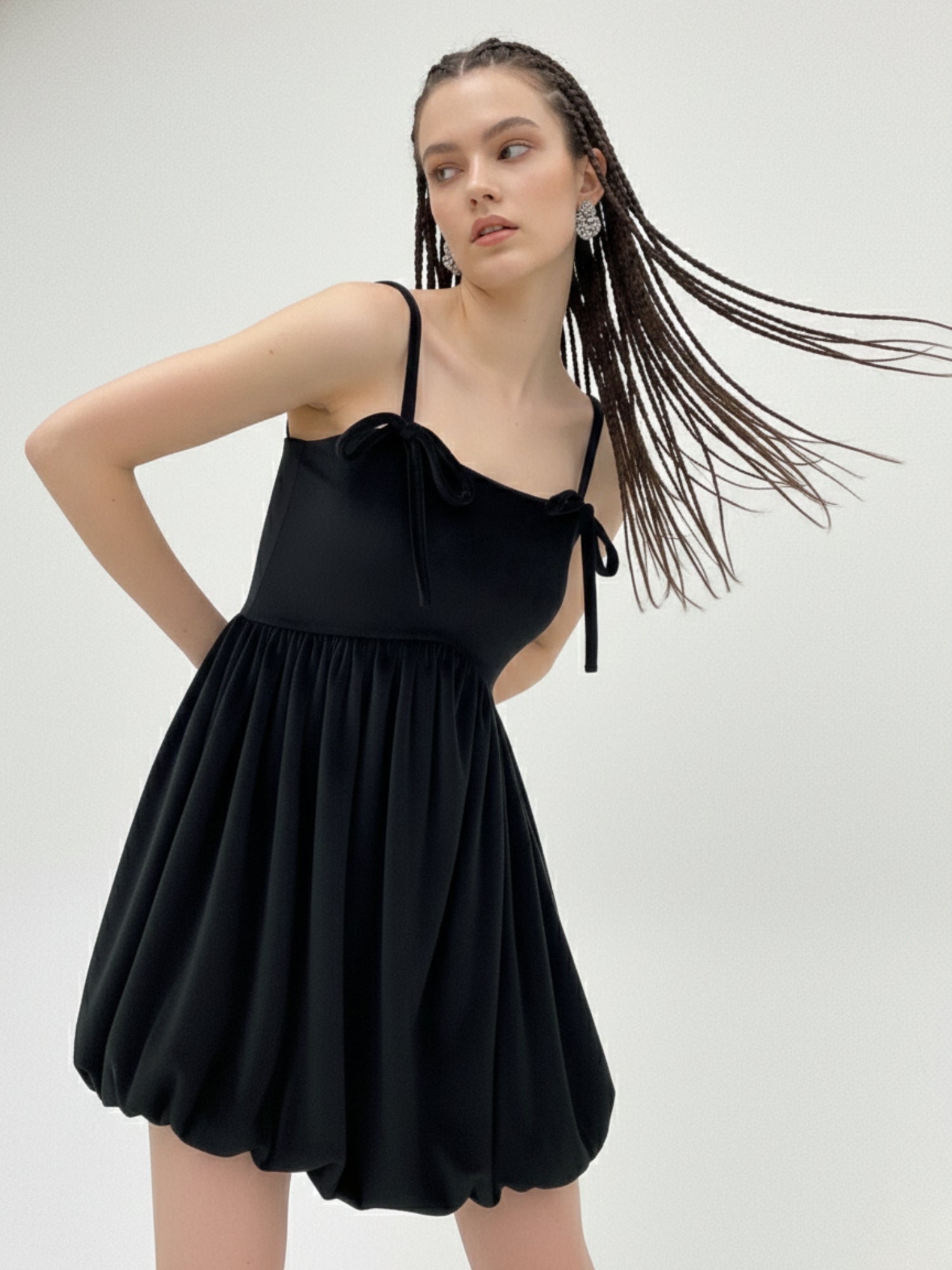 Elevate your wardrobe with this essential black bubble hem dress. This modern take on the little black dress features a flattering fitted bodice and a trendy mini length. Perfect for cocktail hour or birthday celebrations, it pairs effortlessly with statement heels for any elegant evening social or holiday party.