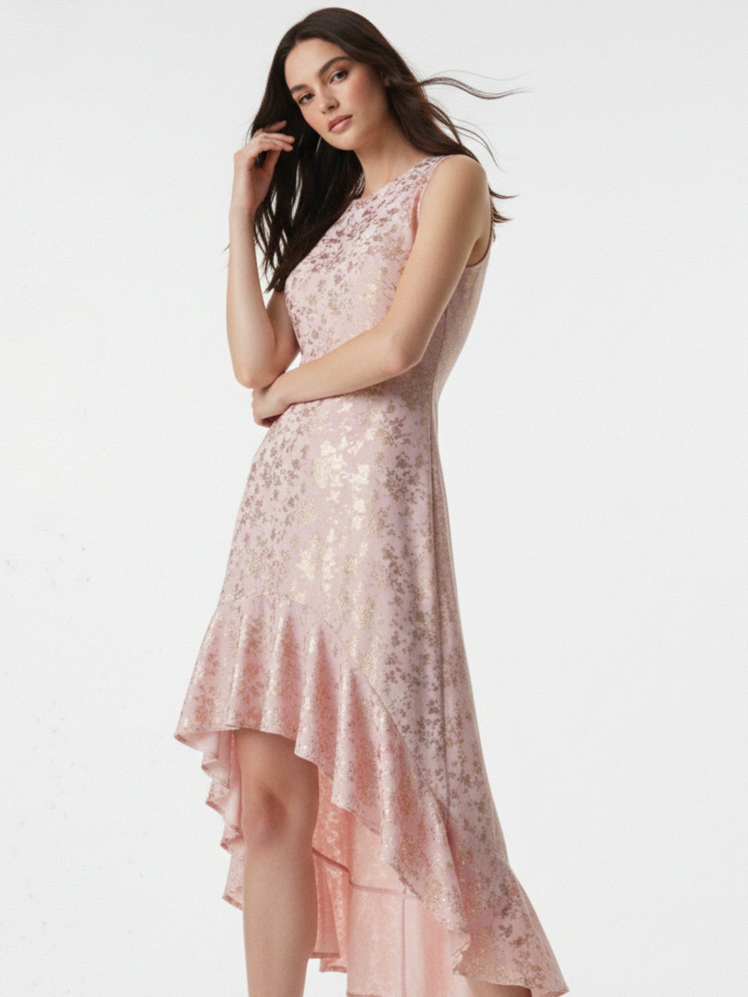 Make an entrance in this pink asymmetric flouncy layered bodycon dress. The unique layers and asymmetric design create a trendy and flouncy party dress look. Perfect for cocktail parties or birthday celebrations, this pink bodycon dress is your go-to for a night out or evening socials.